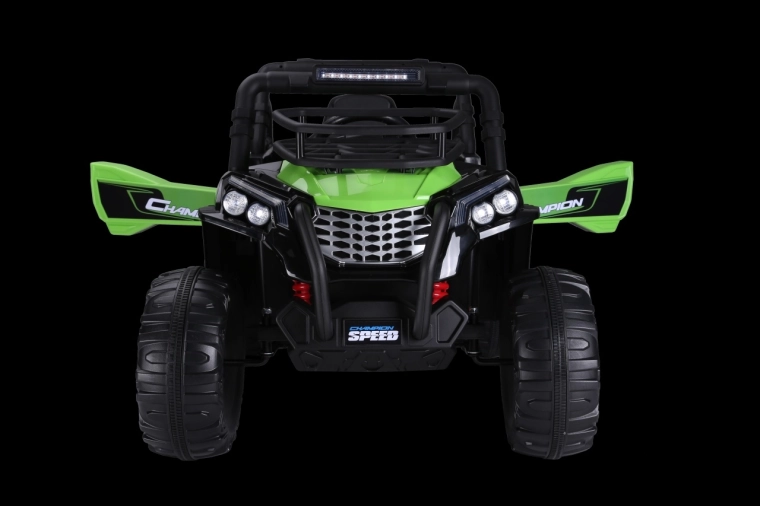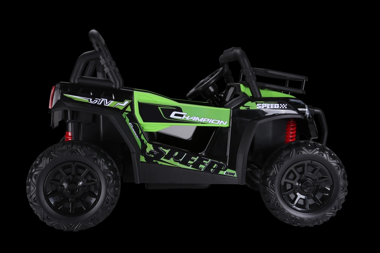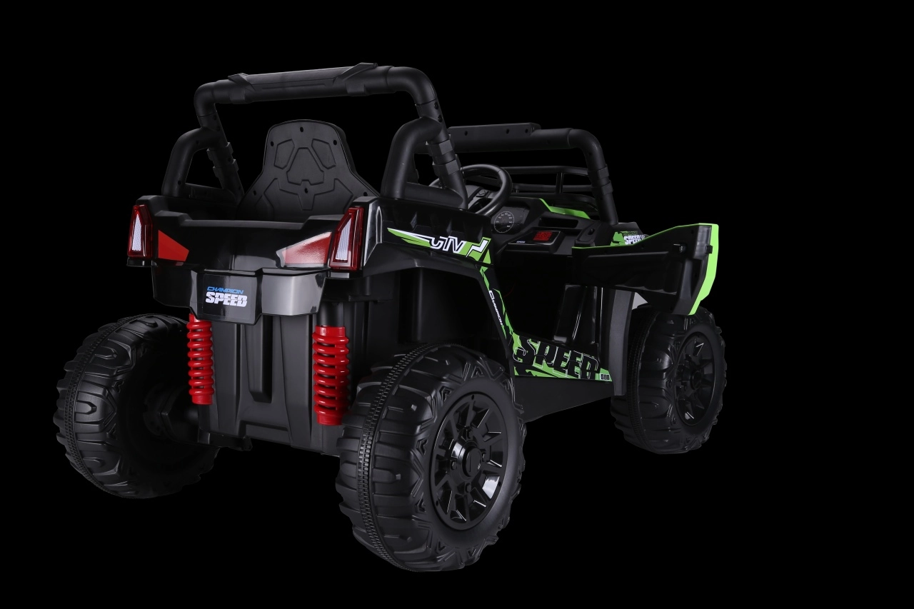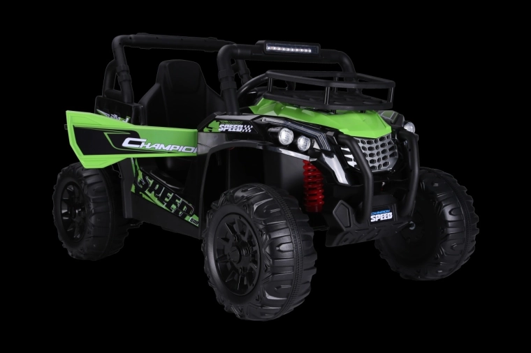 Odkryj zabawę w terenie z dziecięcym pojazdem UTV Lift w zielonym kolorze. Oferuje 2 wydajne silniki 2x200 W, akumulator 24V 5 Ah, płynny start oraz sterowanie za pomocą pilota 2,4 GHz z 3 prędkościami i przyciskiem bezpieczeństwa Stop. Komfort zapewnia siedzisko z eko-skóry z pasami bezpieczeństwa, piankowe koła EVA oraz tylne zawieszenie. Nie brakuje przednich świateł LED i panelu audio z MP3/USB dla jeszcze większej frajdy.