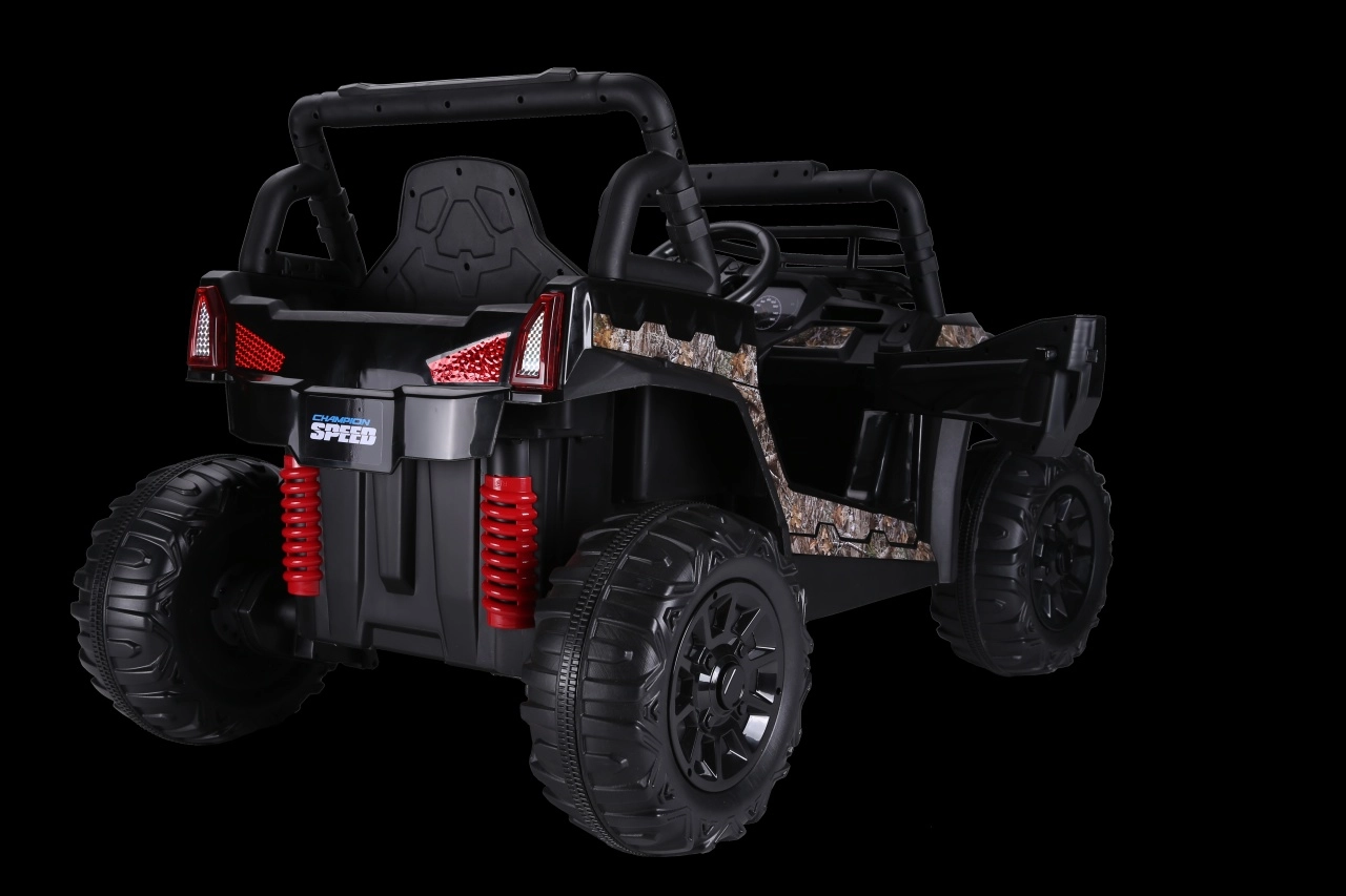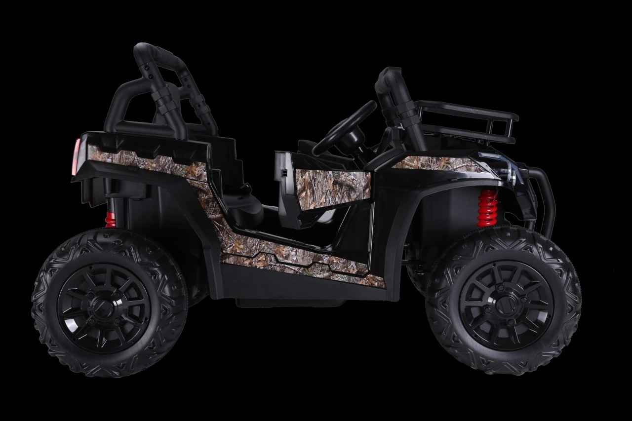Mocny dziecięcy terenowy UTV LIFT z dwoma silnikami 2×200 W i akumulatorem 24 V 5 Ah zapewnia mnóstwo zabawy w ogrodzie i w parku. Ma miękkie koła EVA, łagodny start, 2 prędkości do przodu i do tyłu oraz otwierane drzwi ułatwiające wsiadanie. O komfort dba siedzisko z ekoskóry z pasami, a o atmosferę przednie światła LED i panel audio z USB/MP3.