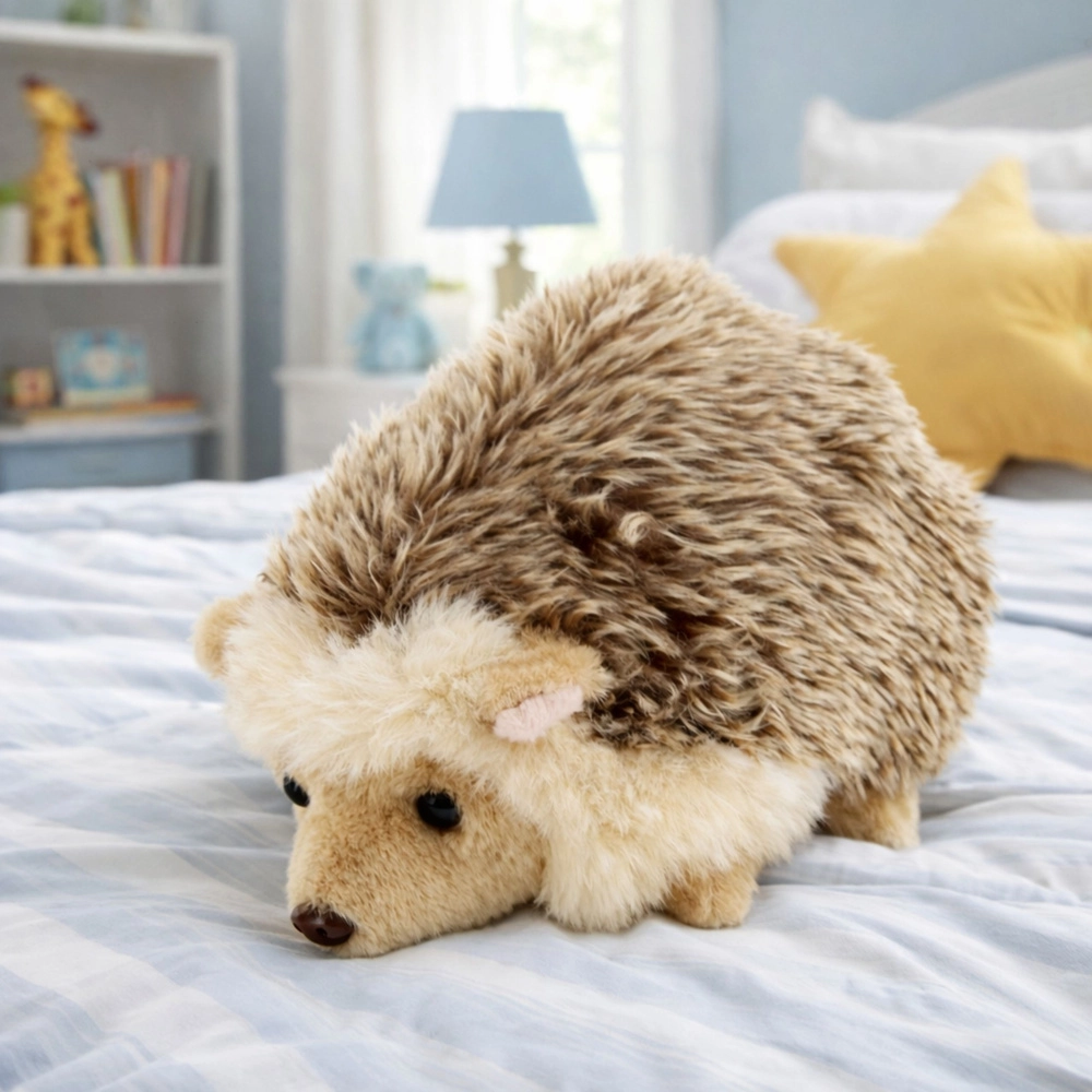 Ten pluszowy jeż wykonany jest z wysokiej jakości miękkiego pluszu, który jest delikatny dla dziecięcej skóry i zachęca do tulenia. Naturalne brązowo-beżowe odcienie oraz starannie wykonane detale – nosek, uszka i miękkie „kolce” – nadają zabawce realistyczny wygląd.