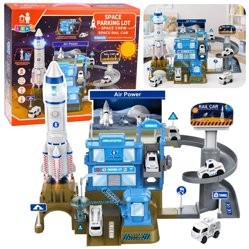 Centrum zestawu stanowi rakieta z efektami świetlnymi i dźwiękowymi (zasilanie 2× AAA), która symuluje prawdziwy start. Wysokiej jakości plastik, nowoczesny kosmiczny design oraz liczne akcesoria (pojazdy, oznakowanie, bramy) czynią z tej zabawki świetny prezent dla małych fanów techniki i kosmosu. Produkt spełnia europejskie normy bezpieczeństwa CE.