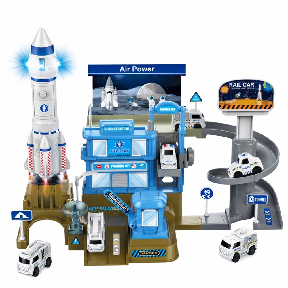Odkryj nieskończoną zabawę z dziecięcą stacją kosmiczną z rakietą – wielopoziomowym zestawem dla małych astronautów. W zestawie znajdują się rampy, winda, parking oraz platforma startowa. Rakieta na baterie oferuje efekty świetlne i dźwiękowe, które sprawiają, że start w kosmos jest maksymalnie realistyczny. Wytrzymałe wykonanie, bogate akcesoria oraz rozwój kreatywności i motoryki podczas zabawy.