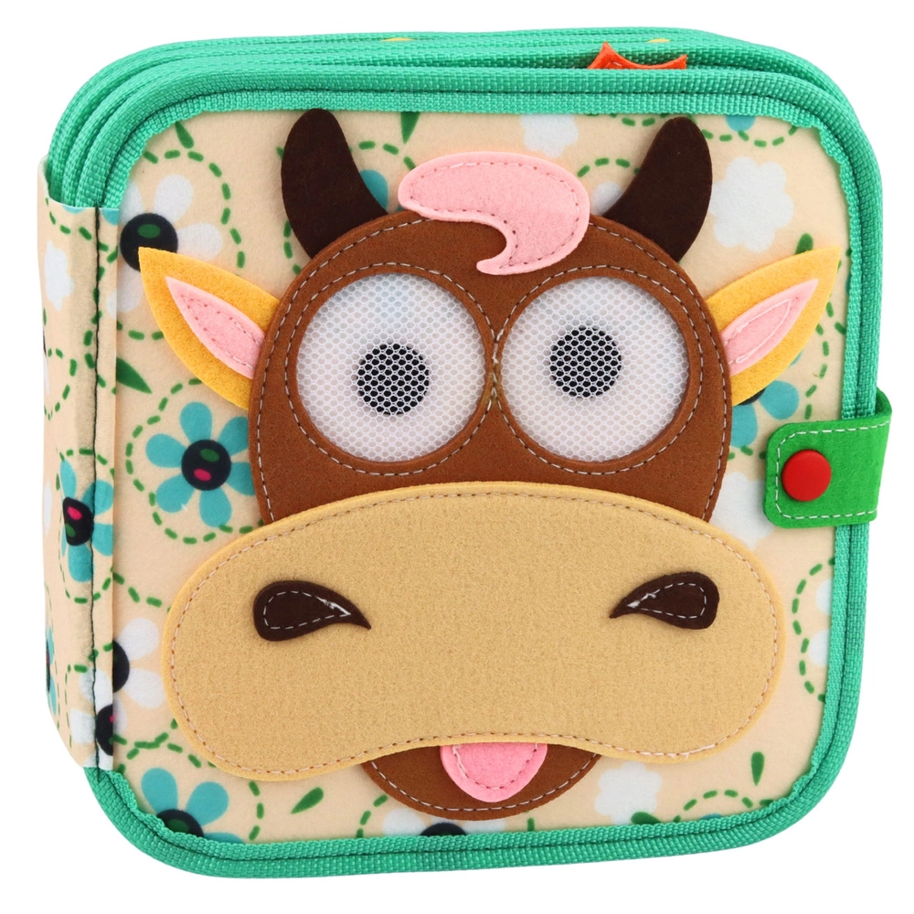 Ta urocza „quiet book” z krówką na okładce zapewnia dzieciom bezpieczne i stymulujące środowisko do zabawy i nauki. Każda strona oferuje inne zadania – przykładanie i przesuwanie filcowych elementów, rozpoznawanie kolorów, kształtów i zwierząt z farmy – co naturalnie rozwija koordynację ręka–oko, koncentrację oraz logiczne myślenie.
