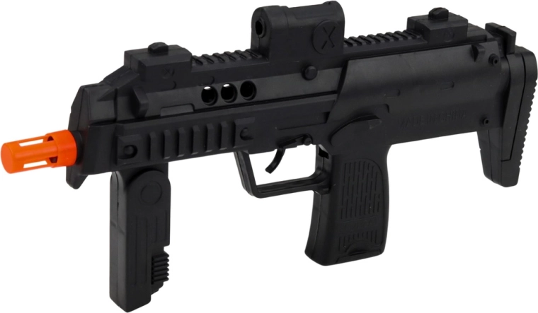Pistolet – rekwizyt, pałka, kajdanki, krótkofalówka i znak STOP pozwalają dzieciom tworzyć różnorodne policyjne sytuacje – od kontroli po patrole.
