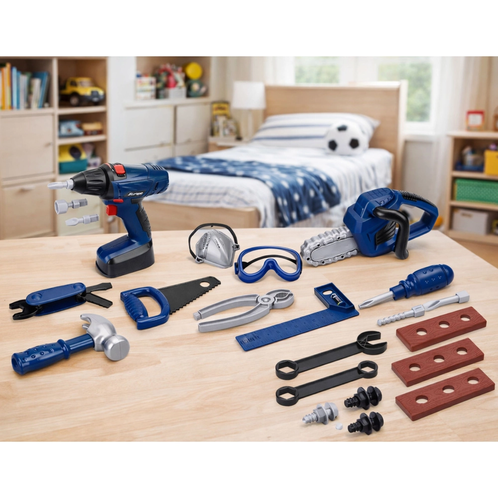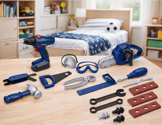 Ten bogato wyposażony zestaw narzędzi dla małych majsterkowiczów wspiera kreatywność, małą motorykę i logiczne myślenie. Dzieci mogą wkręcać, piłować i „naprawiać” przy pomocy bezpiecznych plastikowych narzędzi, jednocześnie poznając podstawy prac technicznych.