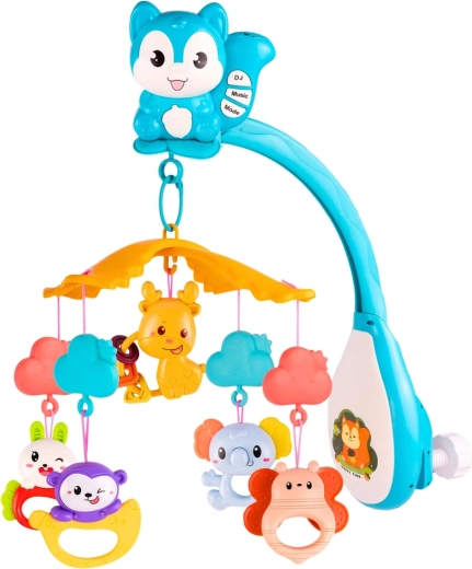 Ta multifunkcyjna karuzela tworzy spokojną atmosferę dla łatwiejszego zasypiania, a jednocześnie rozwija zmysły maluszka. Projektor w kształcie wiewiórki wyświetla kolorowe wzory na suficie, podczas gdy płynna rotacja o 360° i delikatne melodie przyciągają uwagę dziecka i pomagają je wyciszyć.