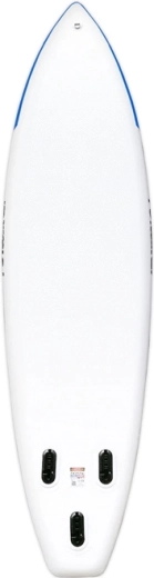 Deska jest wyposażona w praktyczne detale dla wygody i bezpieczeństwa: zdejmowane stateczniki zwiększają kontrolę i stabilność kierunkową, centralny uchwyt ułatwia przenoszenie, a przedni system linek bungee bezpiecznie utrzyma plecak lub akcesoria. D‑ringi pozwalają przypiąć siedzisko kajakowe, dzięki czemu łatwo zamienisz SUP w wygodnego sit‑on‑top.