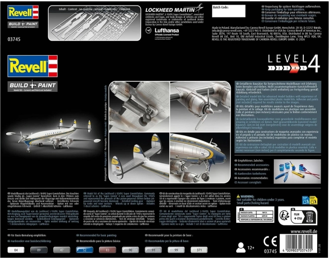 Ten jubileuszowy model przywołuje powrót legendarnej „Connie” do ery złotego wieku lotnictwa. Lockheed L-1049G Super Constellation w barwach Lufthansy, który po raz pierwszy wzbił się w powietrze dla linii w 1955 roku, teraz otrzymujesz jako precyzyjny i historycznie wierny model w skali 1:144. Ekskluzywne opracowanie Revell gwarantuje realistyczne powierzchnie i czyste linie kadłuba.
