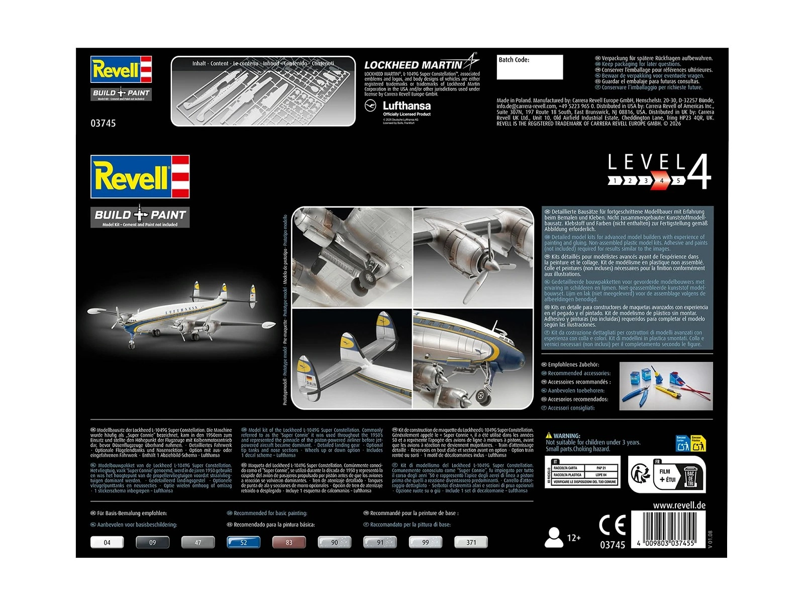 Zbuduj kultowy samolot pasażerski lat 50. – Lockheed L-1049G Super Constellation w barwach Lufthansy w dokładnej skali 1:144. Ekskluzywne opracowanie Revell oferuje autentyczne detale kadłuba, 95 części oraz kalkomanie Lufthansa (ok. 1955). Idealny dla zaawansowanych modelarzy od 12 lat.