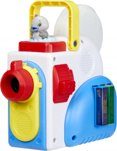 Projektor wyświetla ilustracje na ścianie i jednocześnie odtwarza narrację oraz dźwięki. Dzieci mogą oglądać obrazki, słuchać opowieści i wspólnie ćwiczyć czytanie.