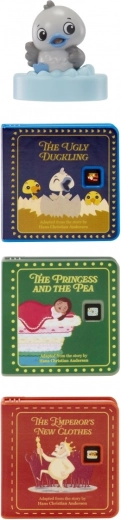 W zestawie znajdziesz 3 klasyczne bajki: Brzydkie kaczątko, Księżniczka na ziarnku grochu i Nowe szaty cesarza, a także uroczą figurkę kaczuszki z Brzydkiego kaczątka, która w trybie lampki tworzy dodatkowe efekty świetlne. Rozszerzalna biblioteka opowieści oferuje kolejne tytuły dostępne do kupienia osobno. Rekomendowana odległość projekcji to 0,6–1,8 m dla ostrego i czytelnego obrazu.