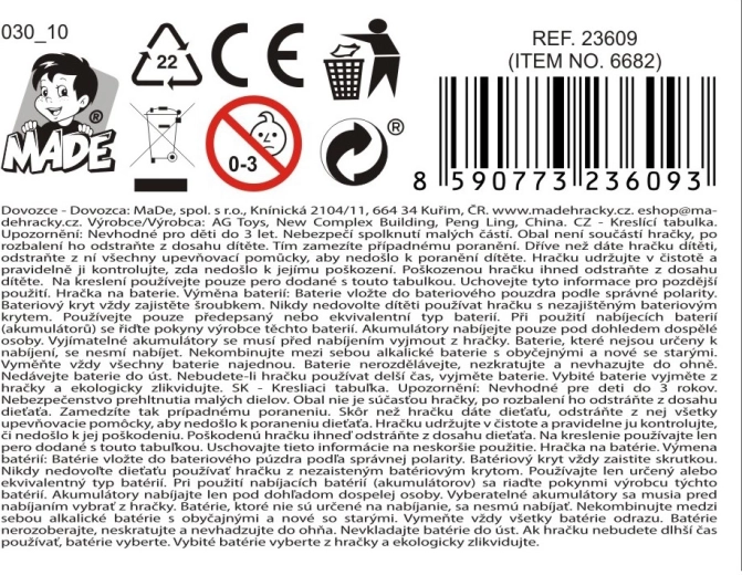 Tablica wykonana jest z wytrzymałego plastiku, jest lekka i bezpieczna do codziennego użytku. Wystarczy napisać lub narysować i jednym naciśnięciem wszystko wymazać – bez papieru i bez bałaganu. Zasilanie zapewnia bateria LR2025, która znajduje się w zestawie, więc możesz zacząć używać od razu.
