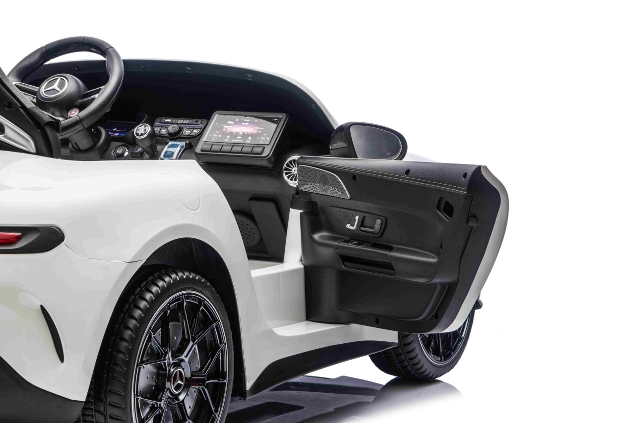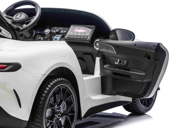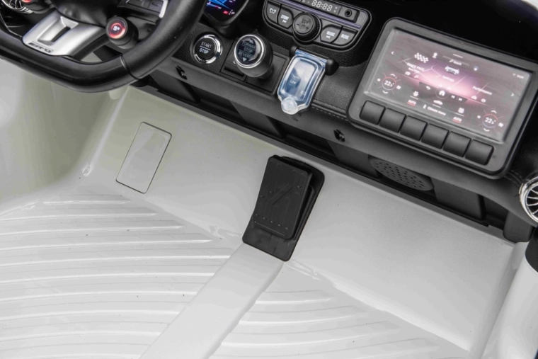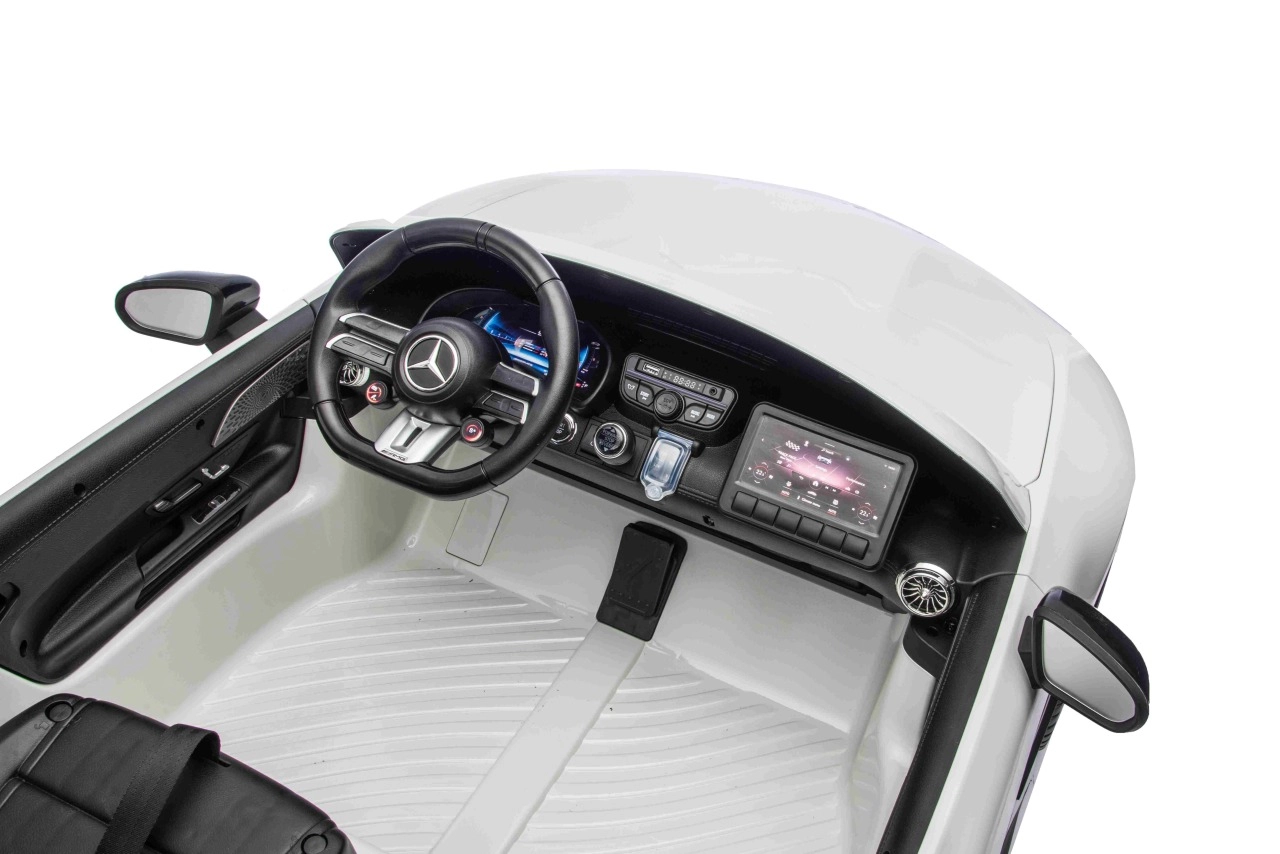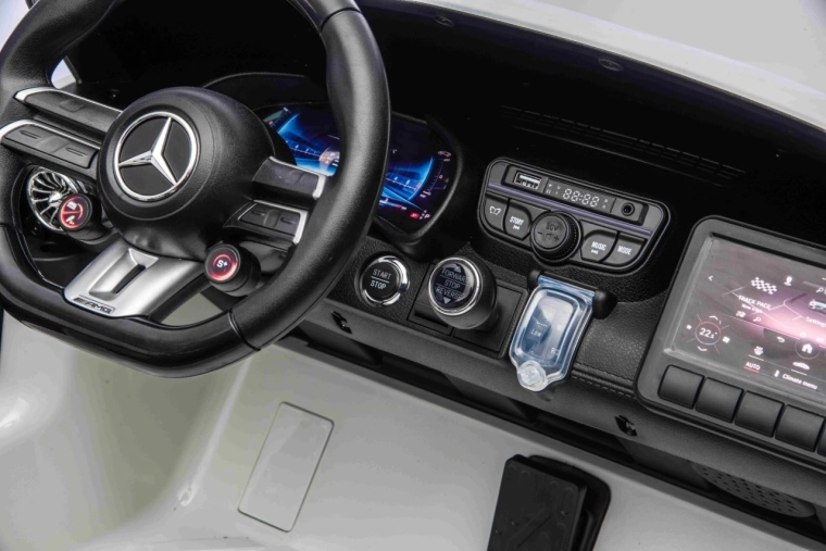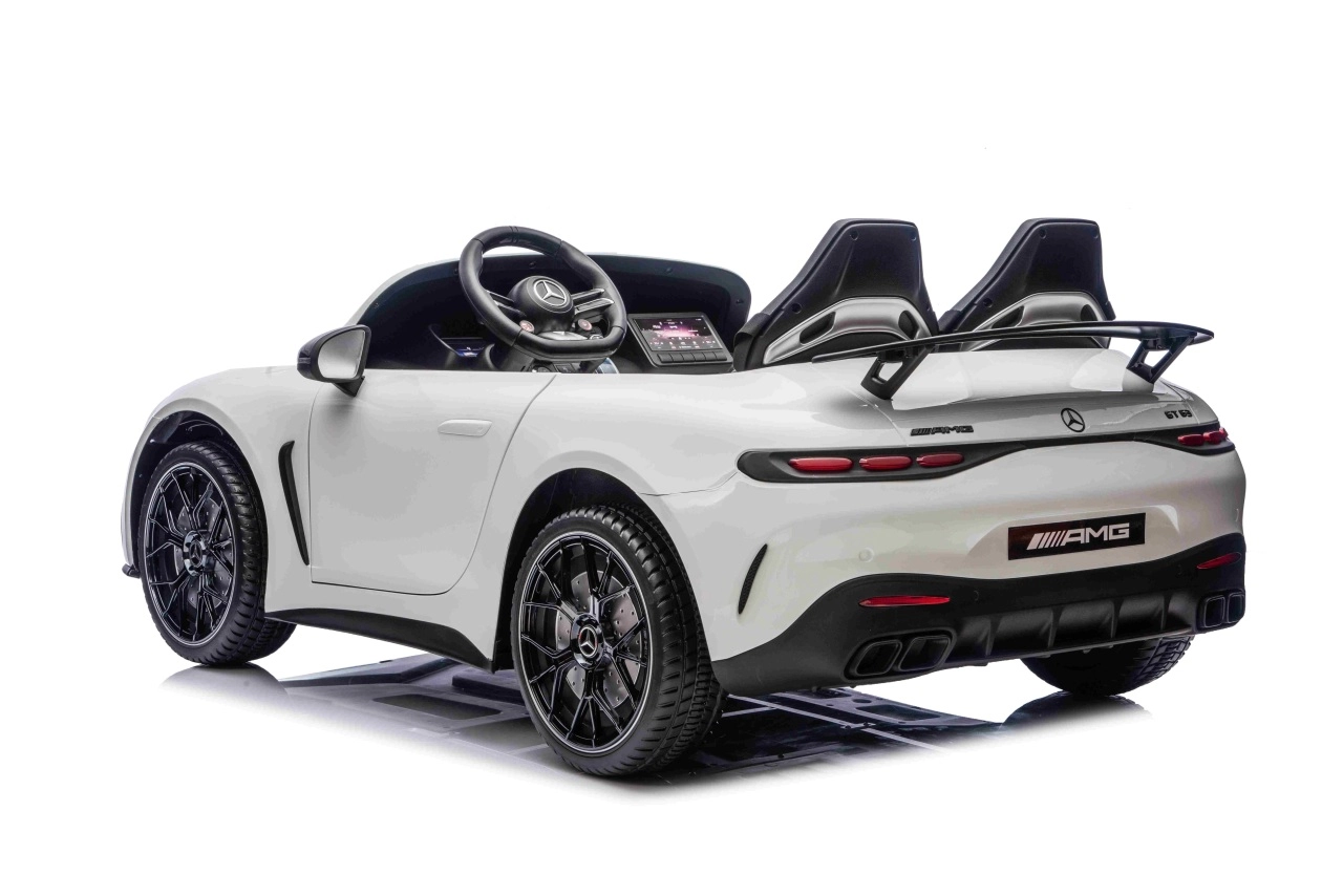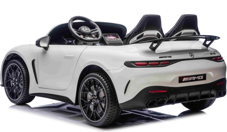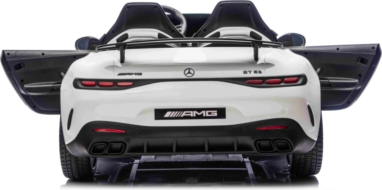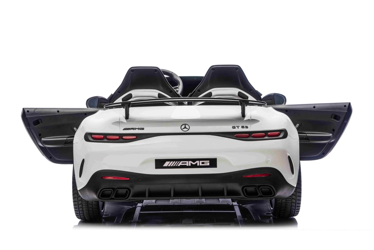 Mercedes-Benz GT63 AMG w wersji dla dzieci łączy topową wydajność i premiumowe wykonanie. Dzięki napędowi 4x200 W i akumulatorowi 24 V / 7 Ah dzieci cieszą się dynamiczną, a jednocześnie bezpieczną jazdą z płynnym ruszaniem. Przestronna karoseria (146 × 86 × 57 cm) oferuje podwójne siedzisko z ekoskóry z pasami bezpieczeństwa i otwieranymi drzwiami dla łatwego wsiadania.
