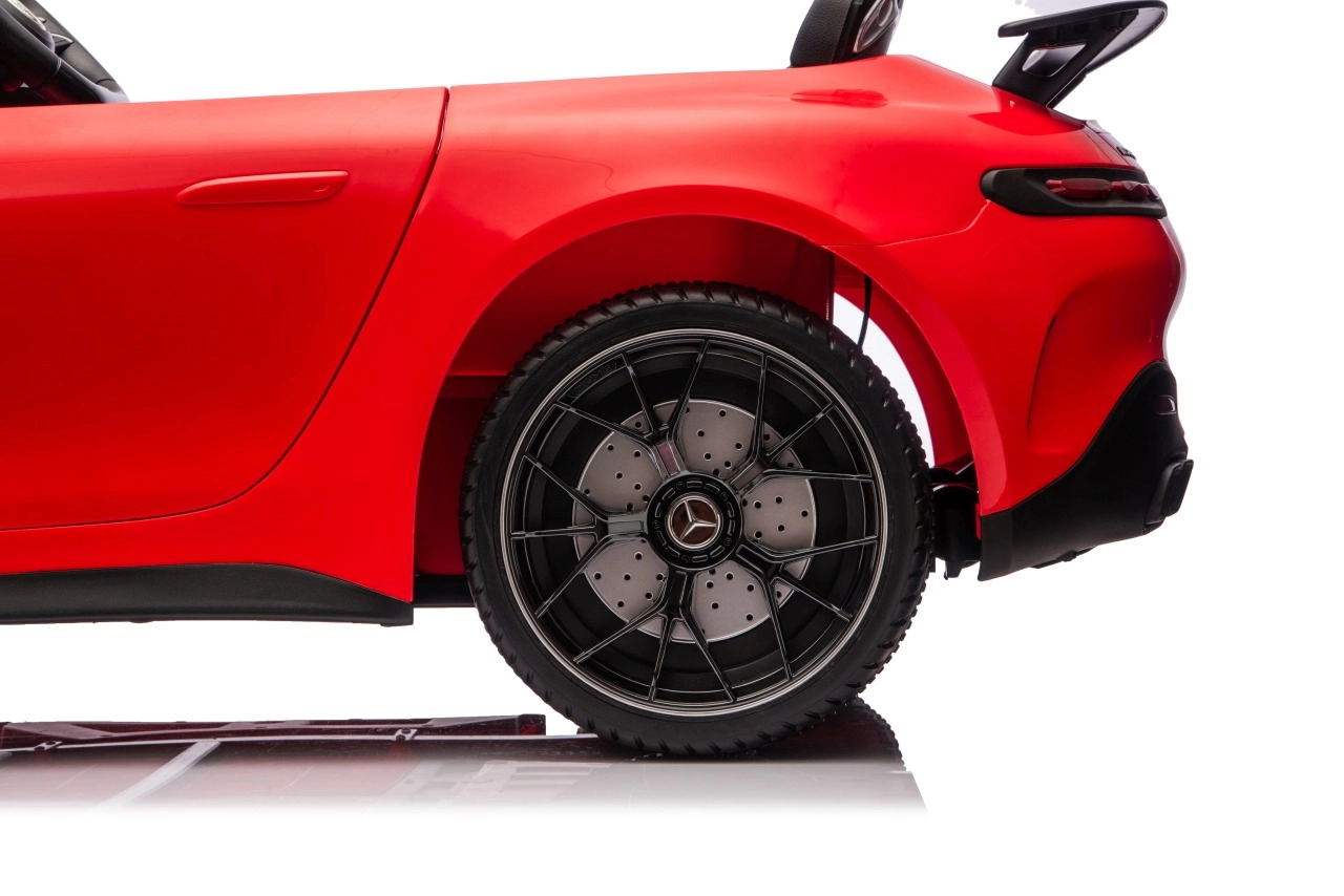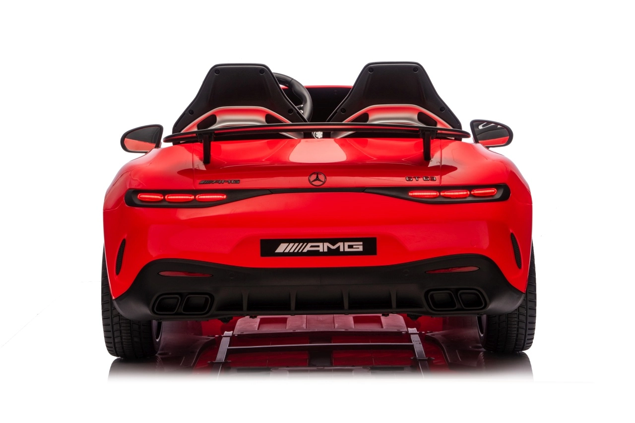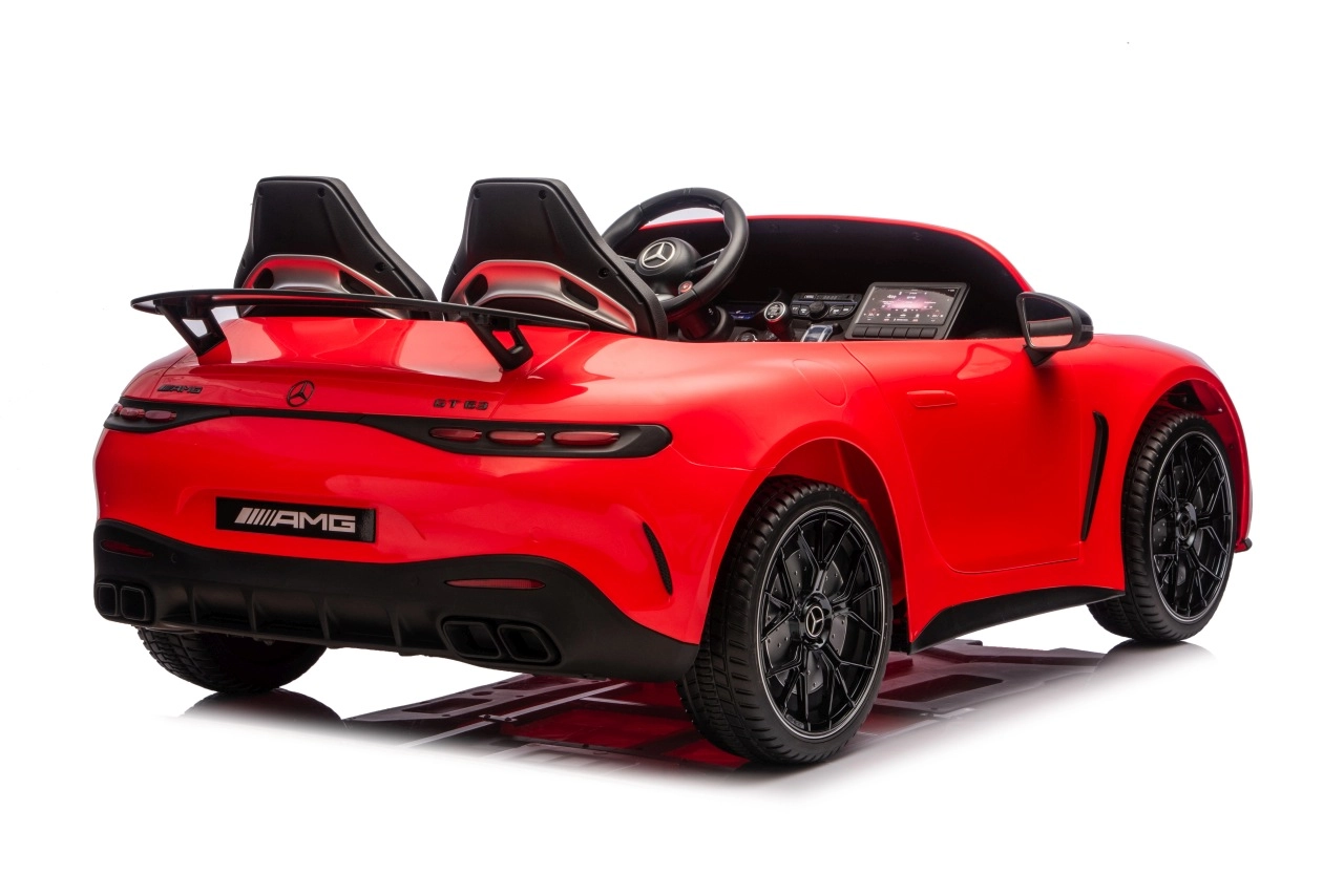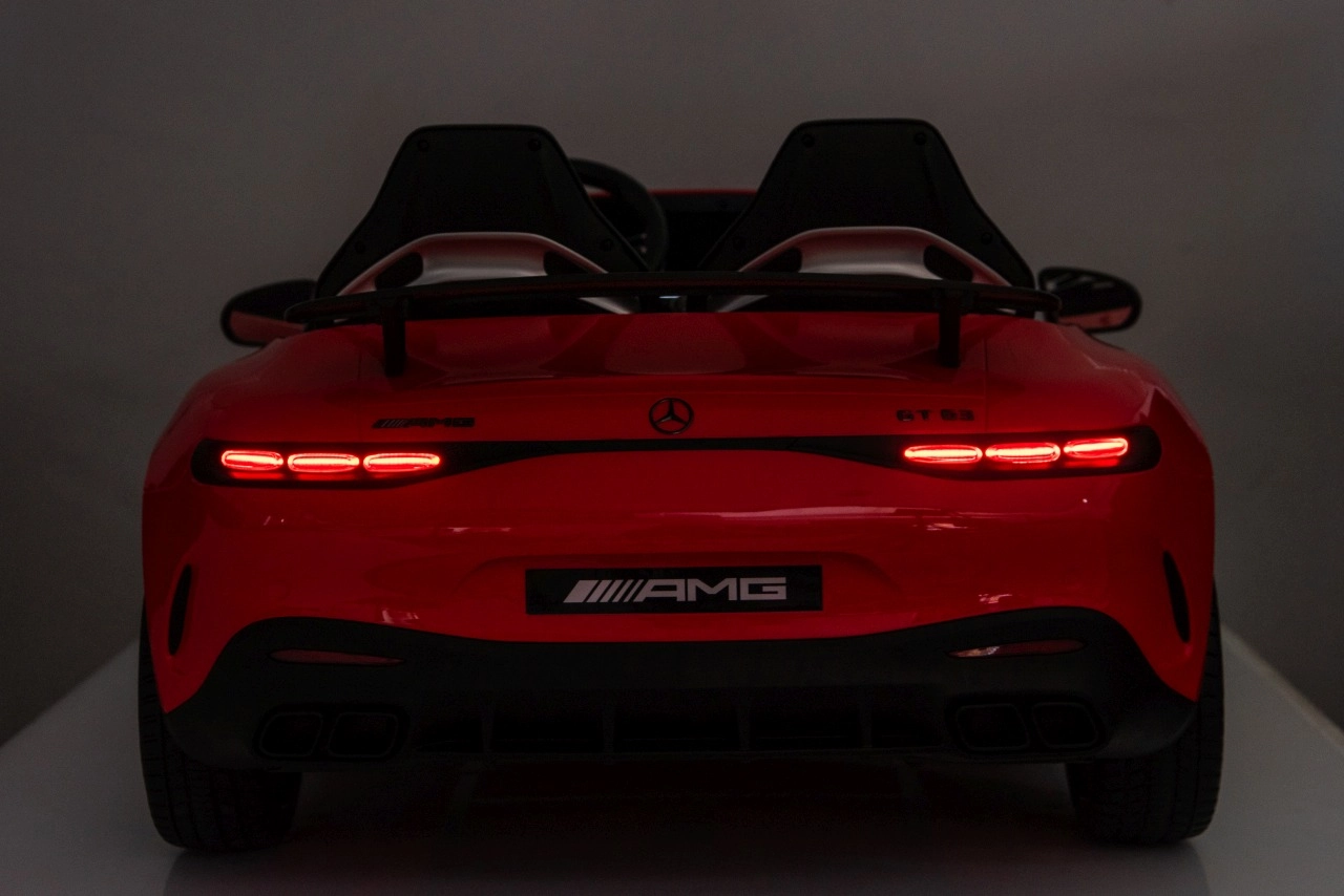Spełnij dziecięce marzenie o sportowym aucie z licencjonowanym wyglądem MERCEDES‑AMG GT63. Ten solidny model poradzi sobie z jazdą z dwojgiem dzieci dzięki napędowi na wszystkie koła 4x200 W i wydajnemu akumulatorowi 24V. Piankowe koła EVA o wymiarach 27×9 cm zapewniają cichą i komfortową jazdę, tylne amortyzatory poprawiają wygodę na nierównościach, a płynny soft start gwarantuje łagodne ruszanie bez szarpnięć.