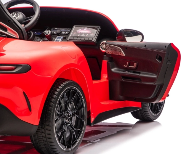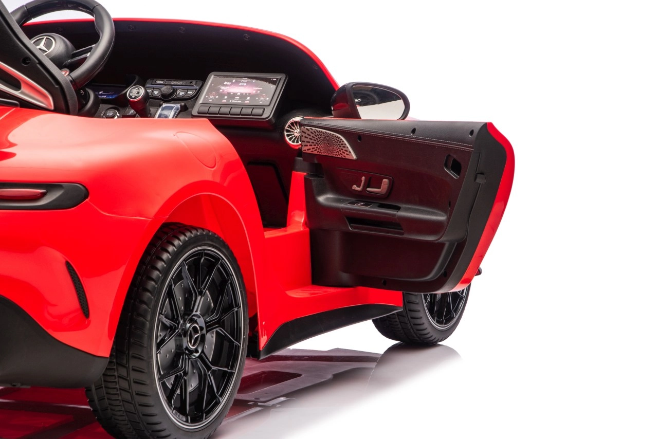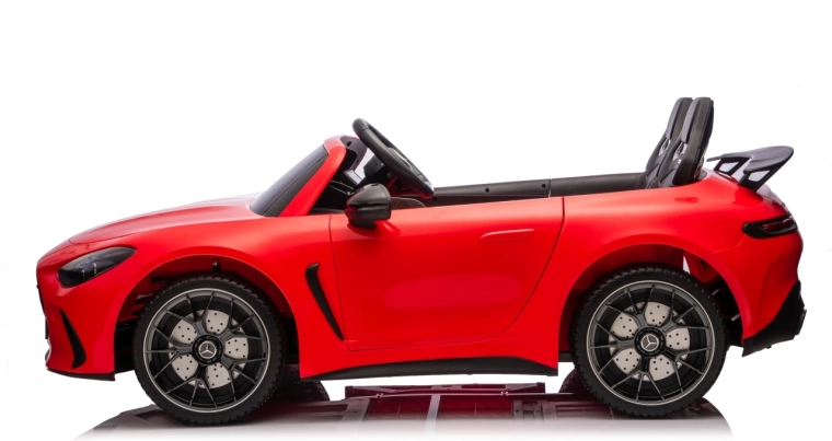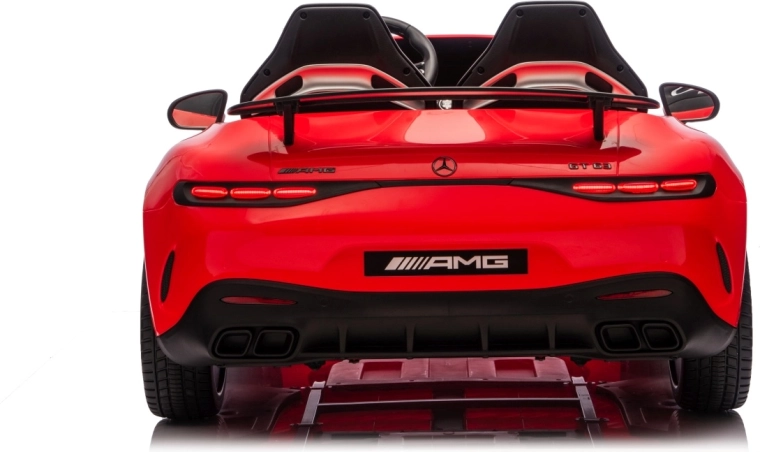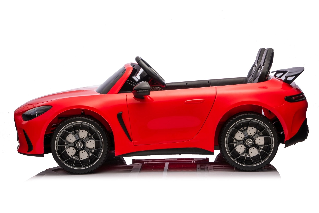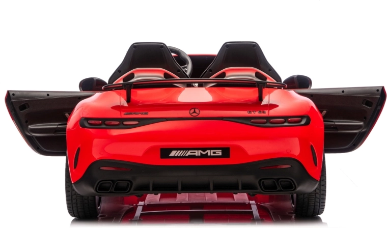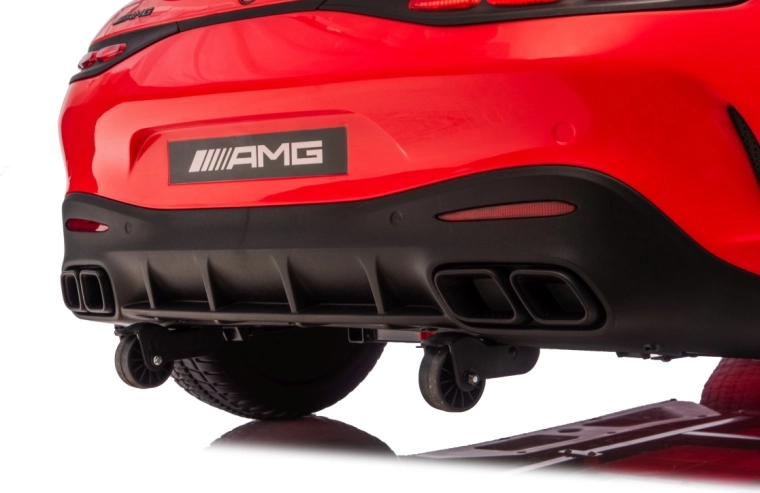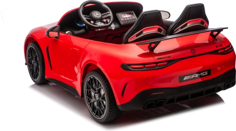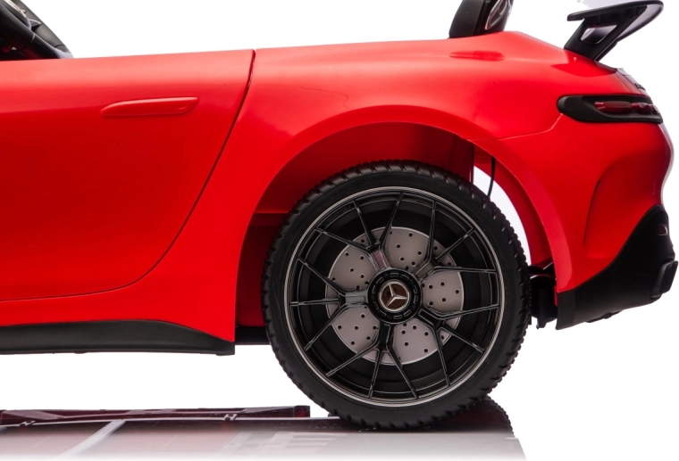 Spełnij dziecięce marzenie o sportowym aucie z licencjonowanym wyglądem MERCEDES‑AMG GT63. Ten solidny model poradzi sobie z jazdą z dwojgiem dzieci dzięki napędowi na wszystkie koła 4x200 W i wydajnemu akumulatorowi 24V. Piankowe koła EVA o wymiarach 27×9 cm zapewniają cichą i komfortową jazdę, tylne amortyzatory poprawiają wygodę na nierównościach, a płynny soft start gwarantuje łagodne ruszanie bez szarpnięć.