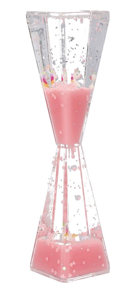 Dzięki stabilnej podstawie możesz bezpiecznie postawić ją na biurku, stoliku nocnym lub w pokoju dziecięcym. Przezroczyste korpus podkreśla dekoracyjne brokatowe drobinki i kształty, które pięknie wirują w trakcie przepływu.