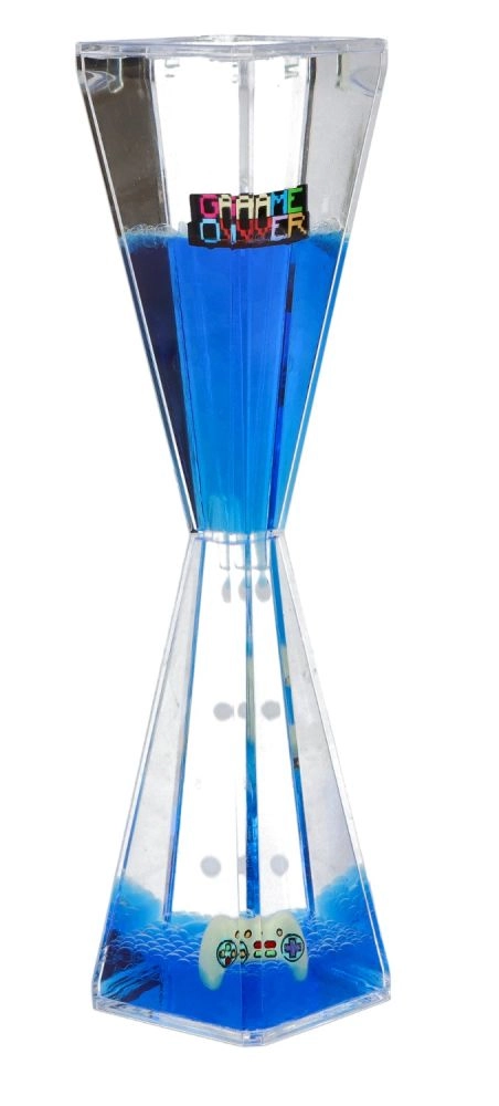 Ciesz się spokojnym przepływem kropli w przezroczystym korpusie w kształcie klepsydry. Żelowa ciecz płynnie spływa z górnej komory do dolnej, tworząc hipnotyzujący efekt, który pomaga wyciszyć umysł i wspiera koncentrację. Gamingowa grafika i napis Game Over czynią z niej idealny prezent dla graczy i miłośników designerskich gadżetów.