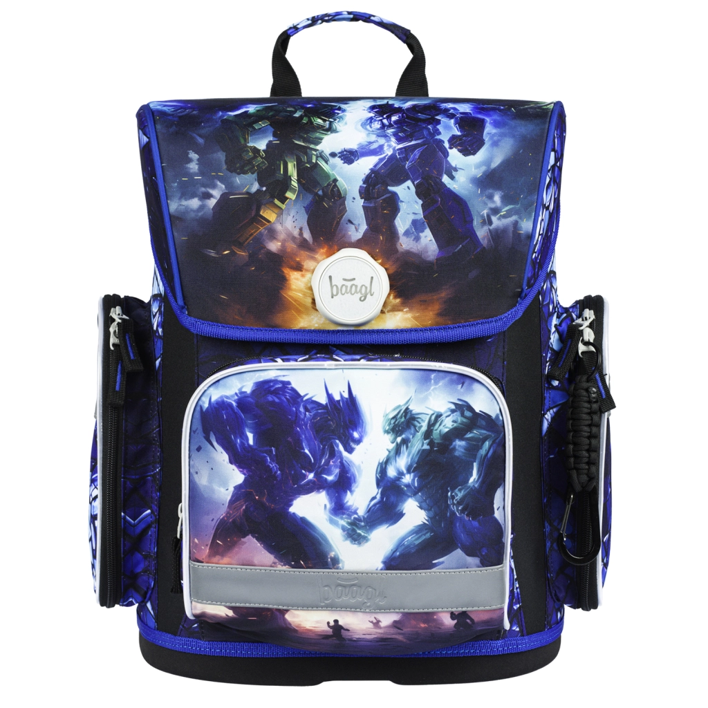 BAAGL zestaw szkolny Roboty dostarcza dzieciom wszystkiego, czego potrzebują do szkoły i na zajęcia dodatkowe – w spójnym designie z motywem bitwy robotów. Główną gwiazdą jest solidny, lekki i ergonomiczny tornister z regulowanym systemem ERGO ADJUSTABLE SYSTEM, który rośnie razem z dzieckiem i pomaga w prawidłowym rozłożeniu obciążenia. Magnetyczne zapięcie Fidlock umożliwia błyskawiczne otwarcie i automatyczne zamknięcie.