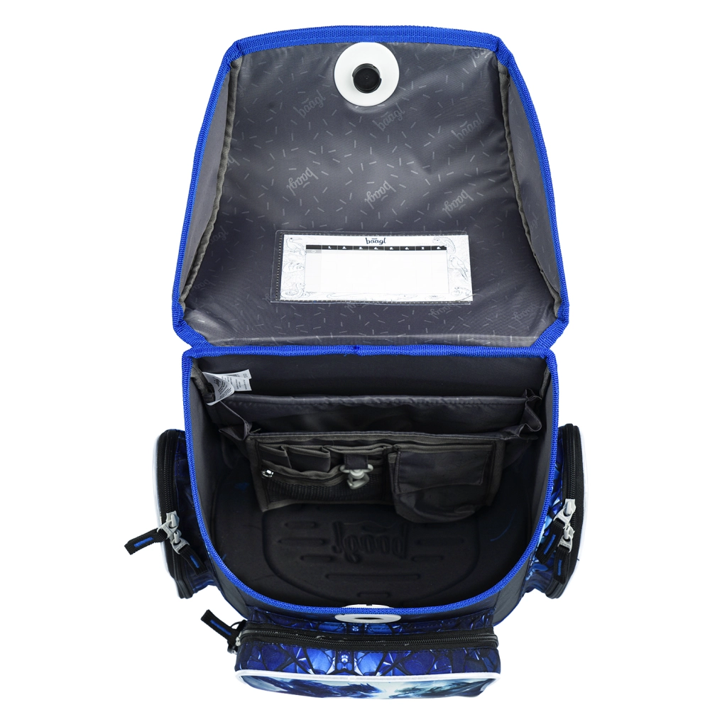 Praktyczny podział wnętrza z organizerem, przezroczystą kieszenią na plan lekcji, izolowaną kieszenią przednią oraz dwiema kieszeniami bocznymi utrzymuje porządek. Zestaw uzupełnia jednopoziomowy piórnik (bez wyposażenia) na suwak YKK, wytrzymały worek ze ściągaczem noszony na plecach i z karabińczykiem do przypięcia do tornistra, zmywalny dziecięcy fartuch z dwiema kieszeniami oraz portfel na szyję z miejscem na imię i nazwisko oraz bezpieczną blokadą na sznurku.