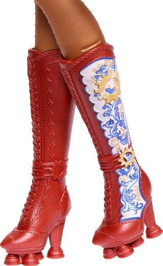 Robecca Steam to odważna bohaterka ze świata MONSTER HIGH z unikalnym mechanicznym urokiem. Noszone elementy w biało‑niebieskich tonach, czarne szorty i ikoniczne gogle lotnicze podkreślają jej steampunkowy wygląd. Nie brakuje stylowej torebki w kształcie zegara, która dopełnia kolekcjonerski charakter lalki.