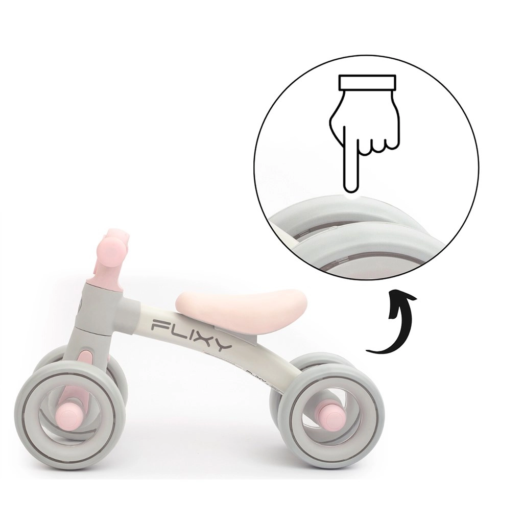 Zapewnij swojemu dziecku bezpieczne pierwsze kroki na kółkach. Jeździk FLIXY z 4 kołami oferuje maksymalną stabilność, wspiera rozwój równowagi i koordynacji, a dzięki światłu LED w kierownicy motywuje do ruchu w formie zabawy. Lekka konstrukcja ułatwia obsługę zarówno dzieciom, jak i rodzicom.