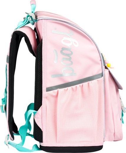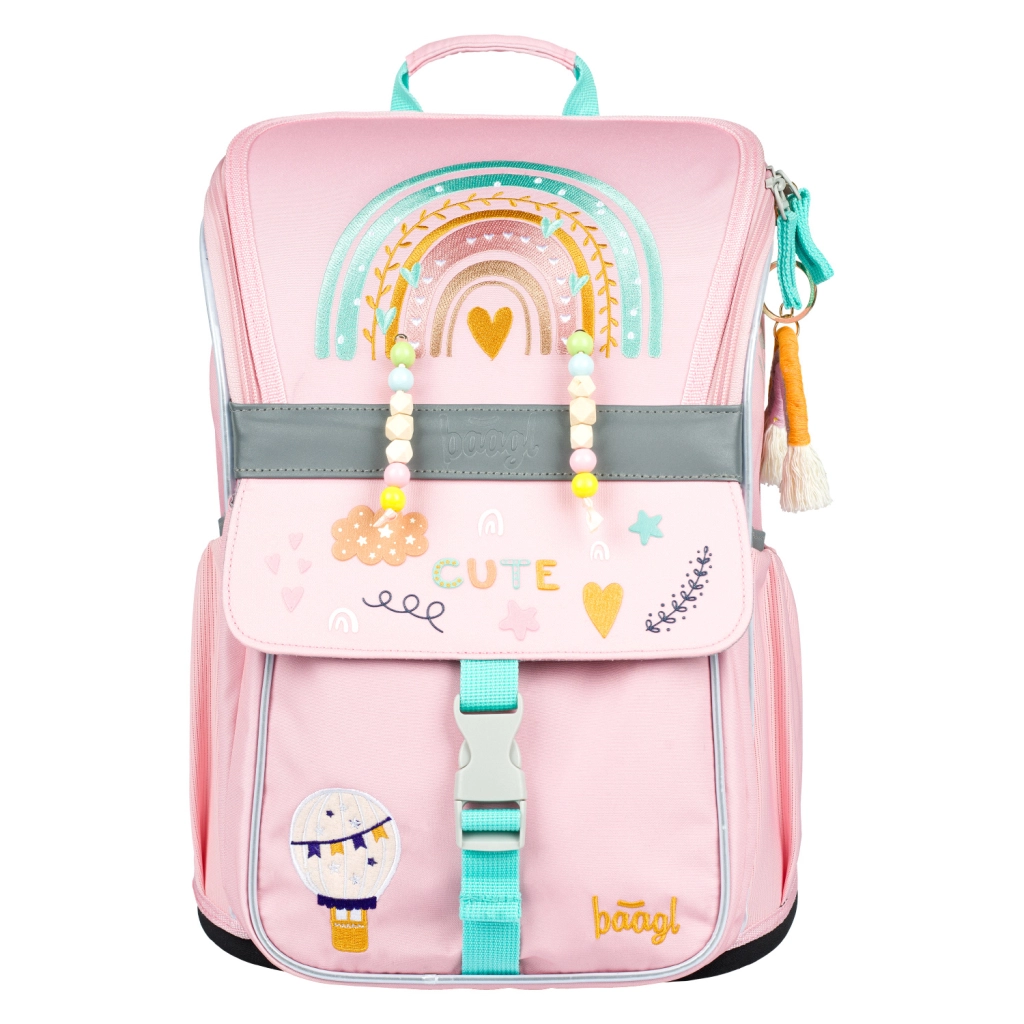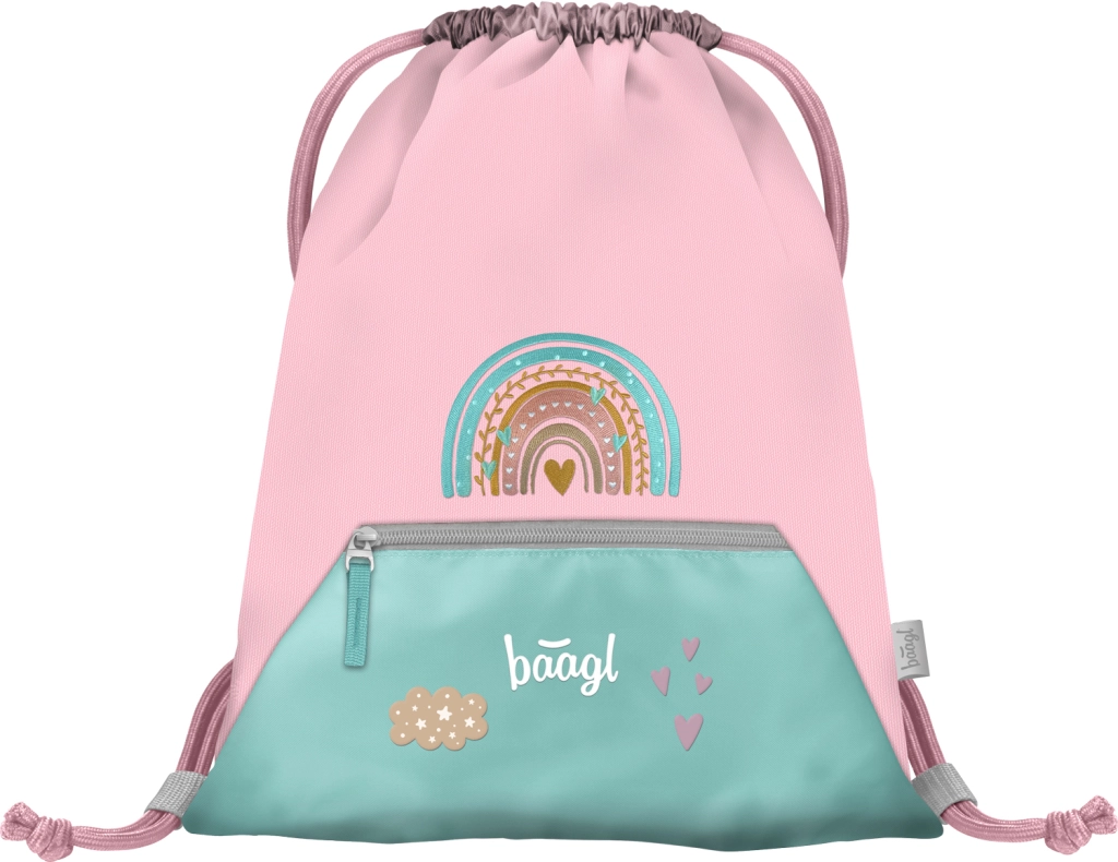 Stylowy szkolny zestaw BAAGL Zippy Tęcza w różowym kolorze dla klas 1–3 szkoły podstawowej zawiera wszystko, czego dzieci potrzebują: ergonomiczny tornister z regulowanym systemem nośnym, jednopiętrowy piórnik, praktyczny worek na plecy z kieszenią, zmywalny dziecięcy fartuszek oraz portfelik na szyję. Dzięki elementom odblaskowym, lekkiej konstrukcji i przemyślanej organizacji zestaw jest wygodny, bezpieczny i gotowy na każdy szkolny dzień.