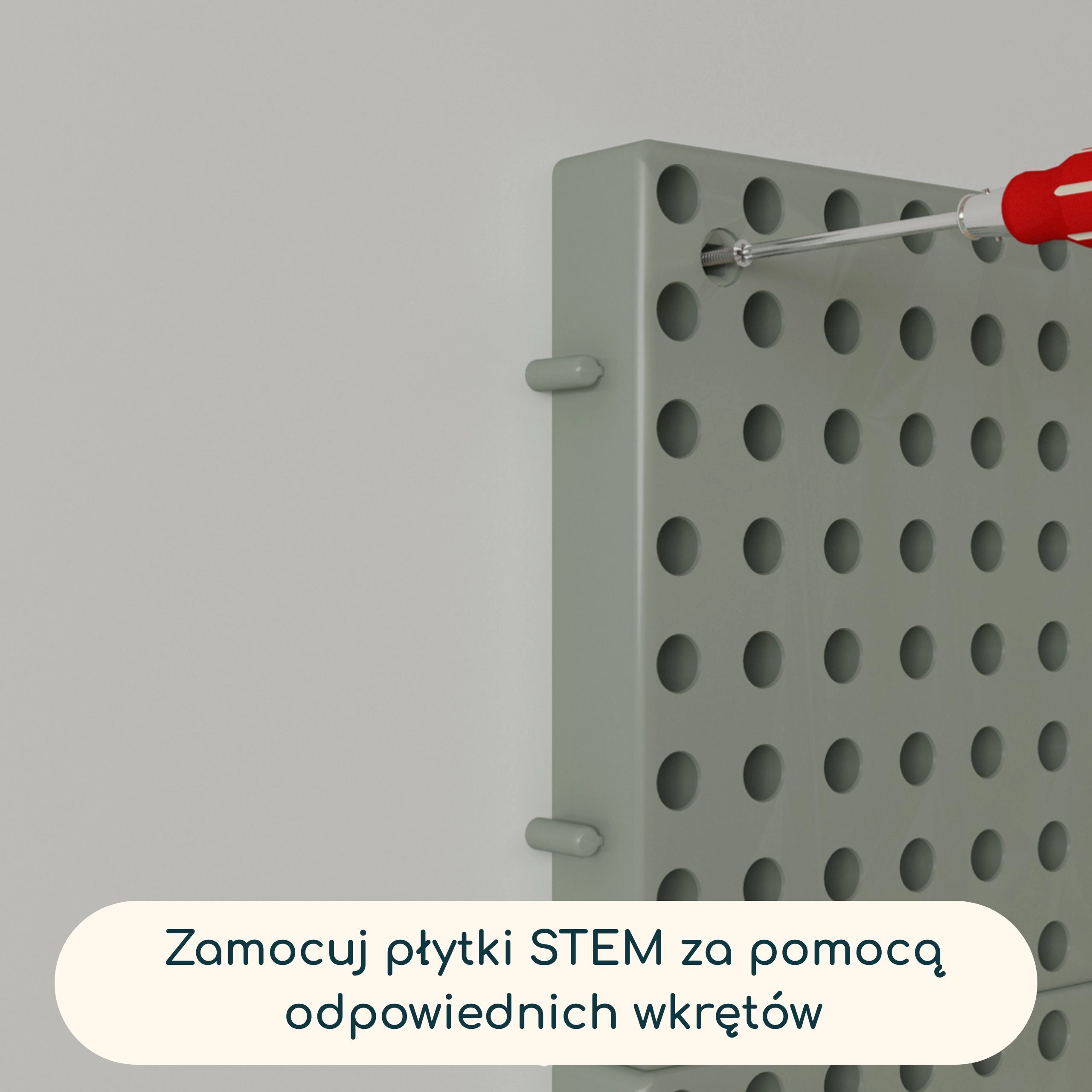 Ściana jest kompatybilna z elementami STEM (kołki, kształty, koła zębate, śruby), więc łatwo dopasujesz aktywności do wieku i umiejętności. Idealna do przedszkoli, szkół, ogrodów i stref edukacyjnych, gdzie wspiera pracę zespołową, samodzielność i naukę przez doświadczenie.