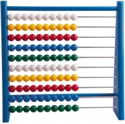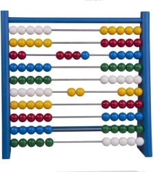 Liczydło jest wyposażone w kolorowe plastikowe koraliki, co sprawia, że nauka matematyki staje się dla dzieci atrakcyjnym wizualnie doświadczeniem.