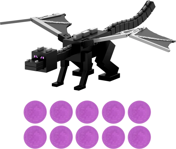 Przeżyj epickie starcia ze świata Minecraft z imponującym Ender Dragonem. Duży, czarny, pikselowy wygląd, przegubowe skrzydła, nogi i ogon oraz efekt „Smoczy Oddech” gwarantują ekscytującą akcję i świetnie prezentują się na wystawce w pokoju dziecka.