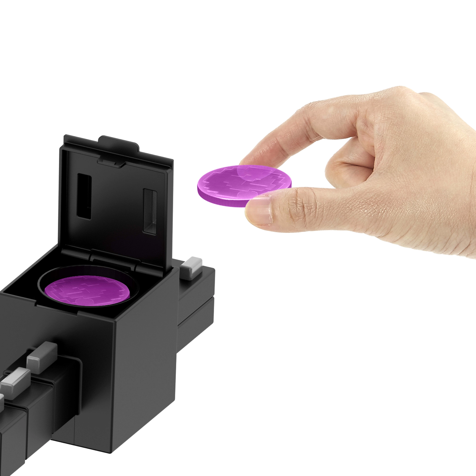 Naciśnij przycisk i wystrzel fioletowe dyski z pyska, by rozegrać dynamiczne bitwy inspirowane grą Minecraft.