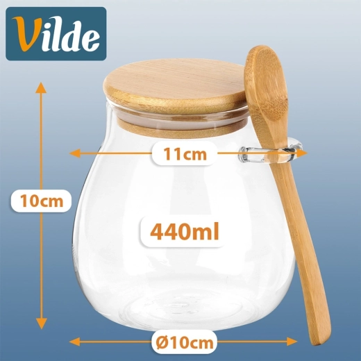 Zestaw dwóch szklanych kubeczków o pojemności 440 ml z bambusową pokrywką i zintegrowaną łyżeczką jest idealny do jogurtów, deserów, dżemów, miodu oraz przypraw. Uszczelniana pokrywka dłużej utrzymuje świeżość zawartości, a praktyczny uchwyt na łyżeczkę sprawia, że zawsze masz ją pod ręką.
