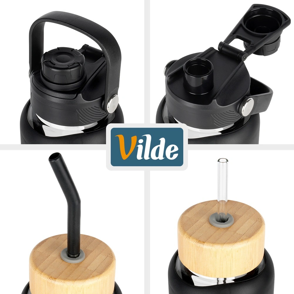 - 1× sportowa pokrywka flip z ustnikiem i uchwytem, 1× bambusowa pokrywka z otworem na słomkę
