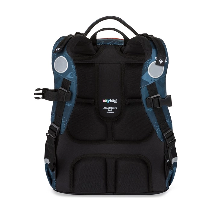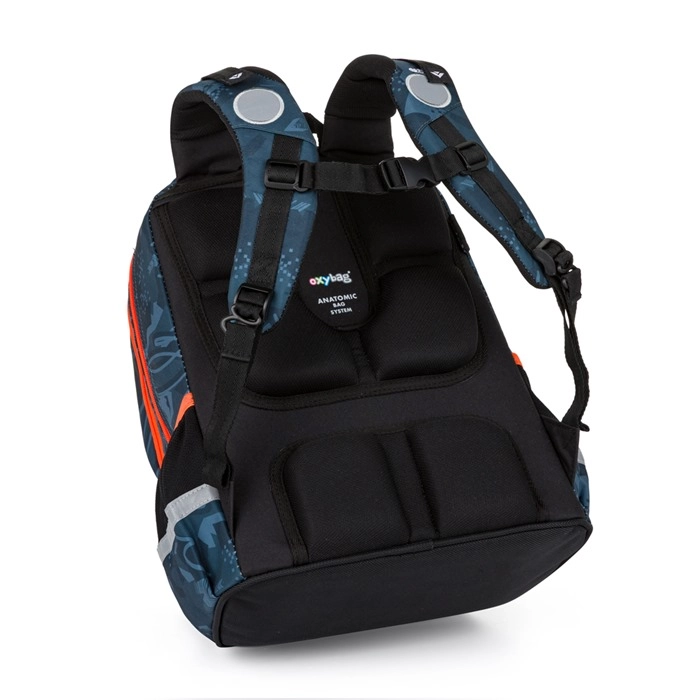 Zestaw szkolny OXY Jumper Auto to świetny wybór dla młodszych uczniów, którzy chcą niezawodnego wyposażenia do szkoły w dynamicznym, motoryzacyjnym stylu. Plecak dzięki udoskonalonemu anatomicznie ukształtowanemu panelowi tylnemu oraz amortyzowanym, regulowanym szelkom wygodnie się nosi nawet przy większym obciążeniu. Pasek piersiowy i pasy dociągowe pomagają rozłożyć ciężar i poprawiają stabilność podczas chodzenia.
