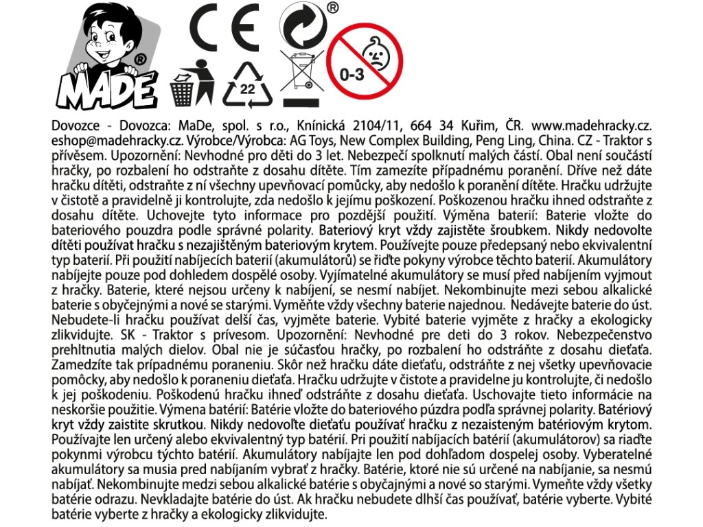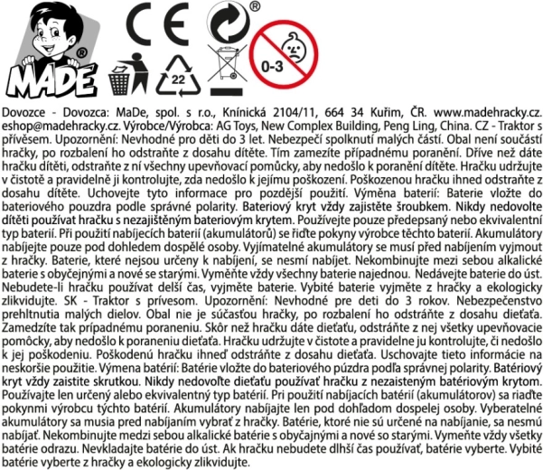 Traktor jest gotowy do użycia od razu po rozpakowaniu, ponieważ 3 baterie AG13 są częścią zestawu. Dzięki kompaktowym wymiarom łatwo mieści się w dziecięcej dłoni i nadaje się do zabawy w domu oraz w podróży.