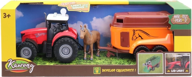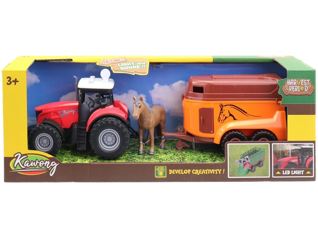 Elektryczny traktor z przyczepą do przewozu koni to świetna zabawka dla małych miłośników farmy. Dzięki realistycznemu wyglądowi i praktycznej przyczepie dzieci łatwo uruchomią wyobraźnię i stworzą własne historie. Zabawka jest wykonana z wytrzymałego plastiku i dostarczana w atrakcyjnym pudełku ekspozycyjnym – idealna również na prezent.