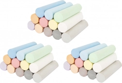 Ten korzystny zestaw zawiera trzy oddzielne opakowania po 12 kolorowych kred, czyli łącznie 36 sztuk. Szeroka paleta pastelowych barw inspiruje dzieci do tworzenia na świeżym powietrzu i w domu. Dzięki większym wymiarom i solidniejszemu przekrojowi kredy dobrze leżą w dziecięcej dłoni, mniej się kruszą i pozostawiają wyraźny ślad.