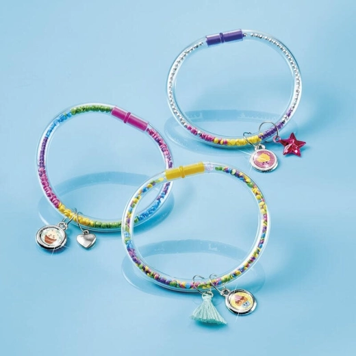 Twórz oryginalne bransoletki pełne blasku i fantazji. Ten kreatywny zestaw oferuje bogaty wybór elementów – od kamyczków i zawieszek po bransoletki tubowe i elementy zapięć – abyś mógł/mogła łatwo skomponować wyjątkową biżuterię dokładnie w swoim stylu.