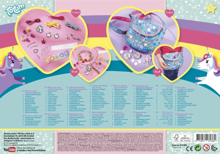 Rozwijaj dziecięcą wyobraźnię z kreatywnym zestawem 2w1 z motywem jednorożca od marki TOTUM. Dzieci wykonają własną biżuterię i ozdobią materiałową torebkę za pomocą dodatków. Zestaw wspiera małą motorykę, kreatywność i poczucie estetyki.