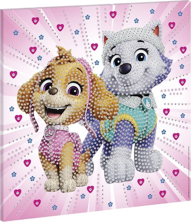 Odkryj magię diamentowego malowania i stwórz własny, migoczący obraz z ulubionymi bohaterami z PAW Patrol. Płótno o wielkości 30 × 30 cm jest wstępnie nadrukowane i podzielone na ponumerowane pola, dzięki czemu łatwo rozpoznasz, gdzie należy umieścić dany kamyk. Ten kreatywny zestaw jest idealny na chwile relaksu i rozwijanie motoryki małej.
