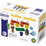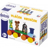 Popularny drewniany pociąg z bajkowego świata KRTEČKA idealnie rozwija wyobraźnię, małą motorykę i twórczość. Dzieci mogą zmieniać kolejność figurek i testować różne kombinacje, co gwarantuje mnóstwo zabawy przy każdej grze. Lokomotywa z dwiema buźkami – wesołą i zdziwioną – nadaje pociągowi figlarny wyraz i możliwości tworzenia historii.