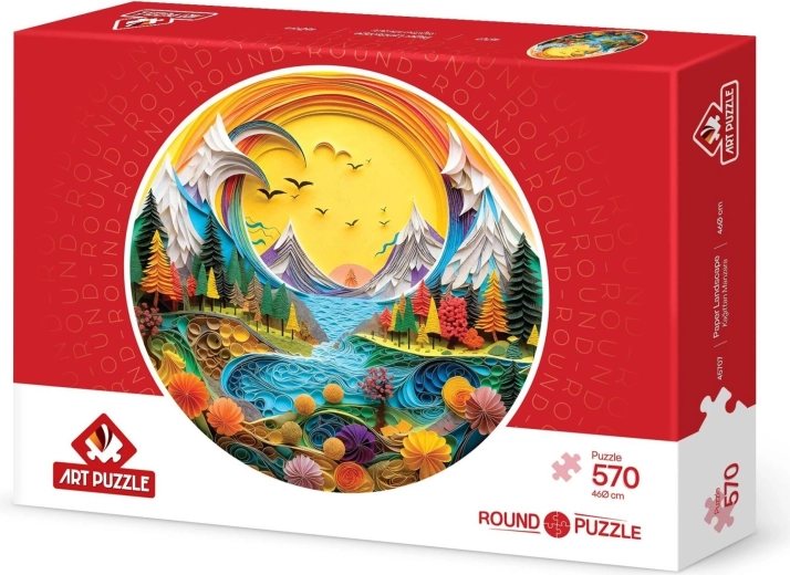 Odkryj radość z układania dzięki tym oryginalnym okrągłym puzzlom z motywem Papierowy krajobraz. Zestaw oferuje 570 elementów, a po ułożeniu tworzy okrągły obraz o średnicy ok. 46 cm – idealny do relaksu, treningu koncentracji i stylowej dekoracji wnętrza.