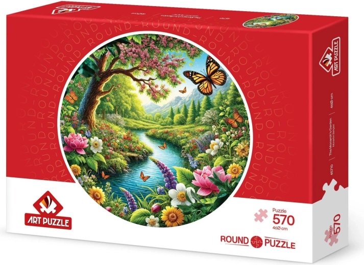 Odkryj magię układania z eleganckimi okrągłymi puzzlami z motywem Ogrodu Monarchy. Dzięki średnicy ok. 46 cm i liczbie 570 elementów zapewniają przyjemne wyzwanie i relaks. Idealne dla miłośników designerskich motywów, którzy docenią oryginalny okrągły kształt, wysoką jakość druku oraz precyzyjnie wycięte elementy dla płynnego łączenia.
