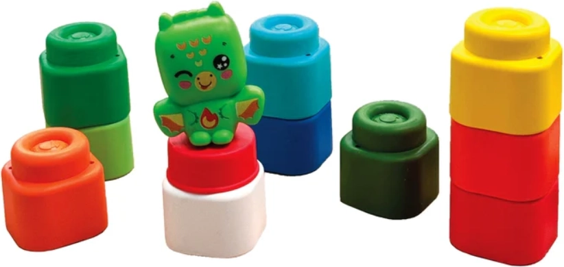Dzięki łatwemu chwytaniu dzieci z łatwością łączą klocki i budują pierwsze wieżyczki oraz konstrukcje. Zabawa naturalnie rozwija małą motorykę, koordynację oko–ręka, kreatywność i wspiera percepcję sensoryczną. Zabawy dopełnia urocza figurka smoka, zachęcająca do opowieści i zabaw w role.