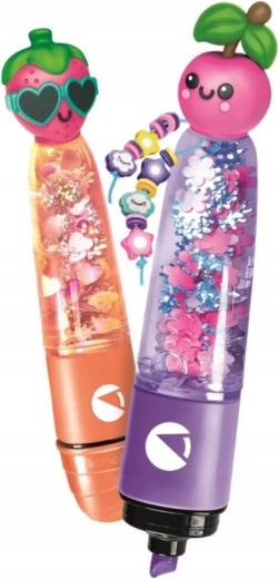 - Elementy do złożenia 2 zakreślaczy, różne kolory atramentu, dekoracje, figurki, narzędzia do montażu i zdobienia