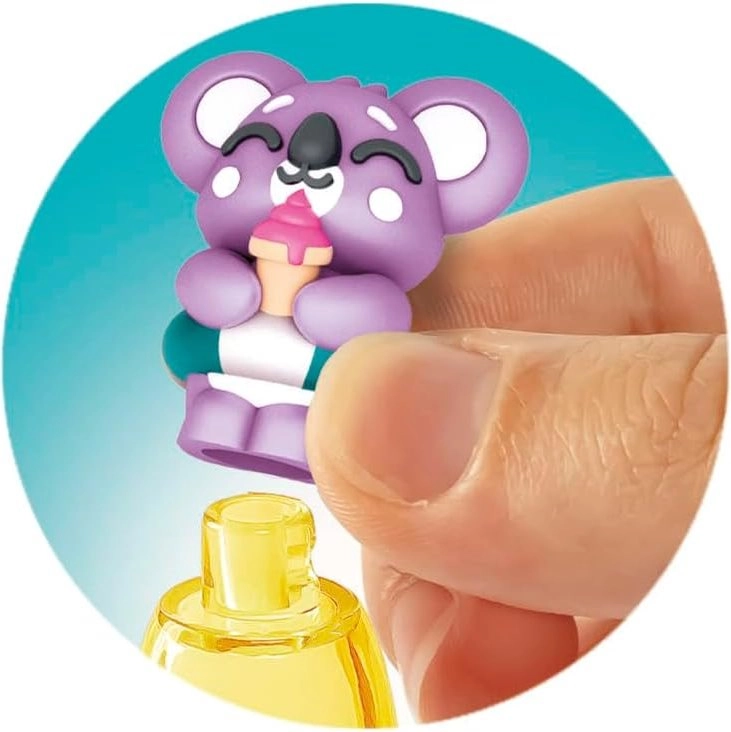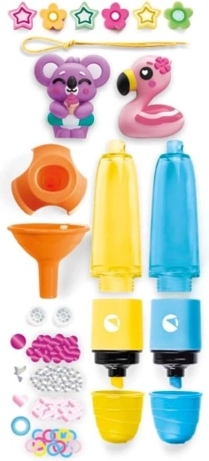 - Elementy do złożenia 2 zakreślaczy, różne kolory tuszu, dekoracje, postacie, narzędzia do montażu i zdobienia