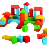 Kolorowa drewniana układanka zawiera 50 starannie wykonanych klocków o różnych kształtach dla małych budowniczych. Wspiera motorykę małą, kreatywność i wyobraźnię przestrzenną. Wykonana z bezpiecznego drewna, spełnia normy UE i jest odpowiednia dla dzieci od 2 lat.