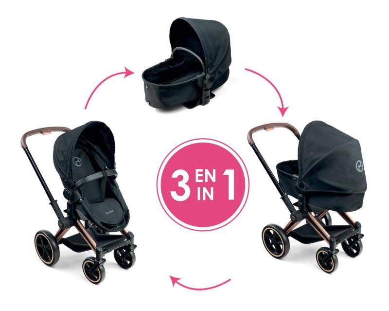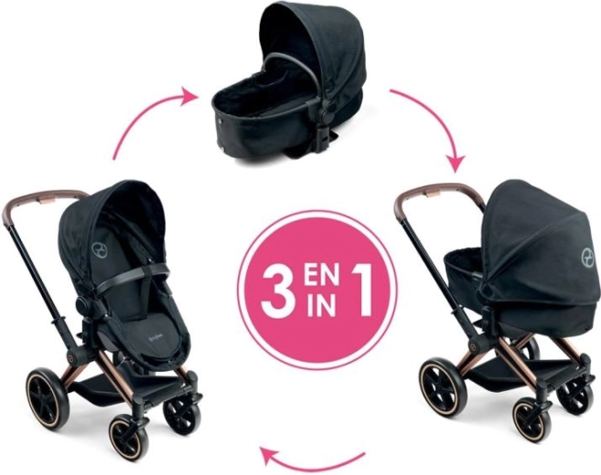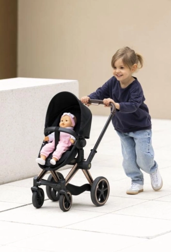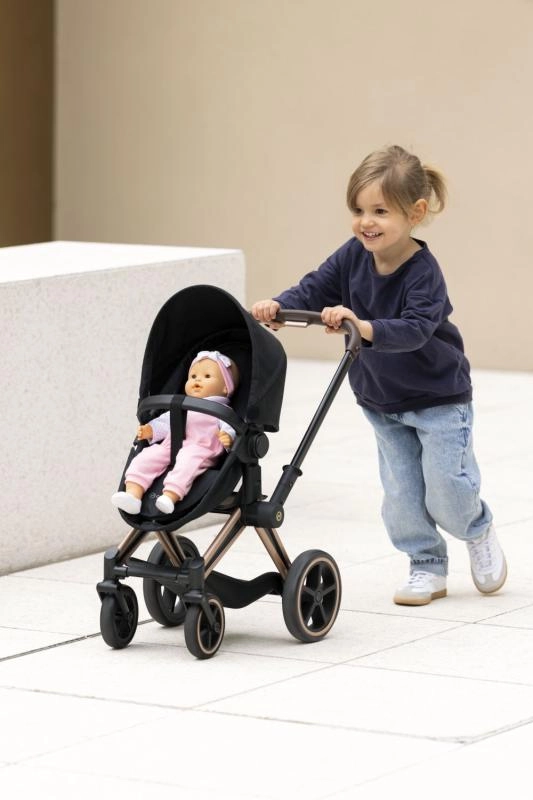Wózek dla lalek CYBEX Black 3 w 1 został opracowany we współpracy z marką CYBEX i wiernie nawiązuje do kultowego modelu PRIAM. Dzieci mogą więc bawić się w rodziców ze stylem i funkcjonalnością jak w prawdziwym wózku. Dzięki przemyślanej konstrukcji posłuży jako głęboka gondola, wózek spacerowy oraz wygodne przenośne łóżeczko.