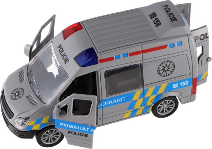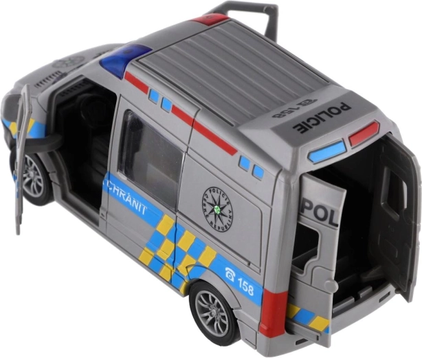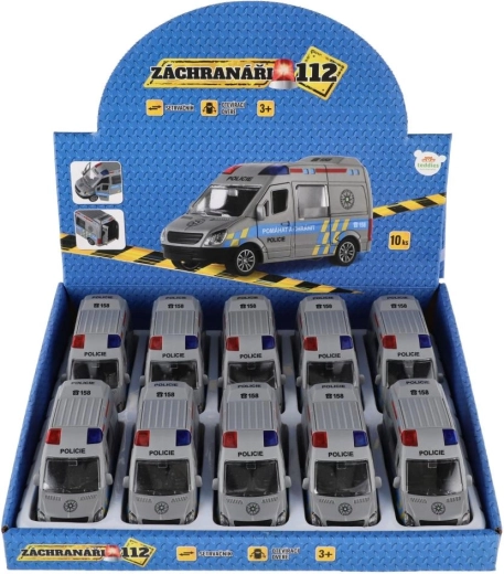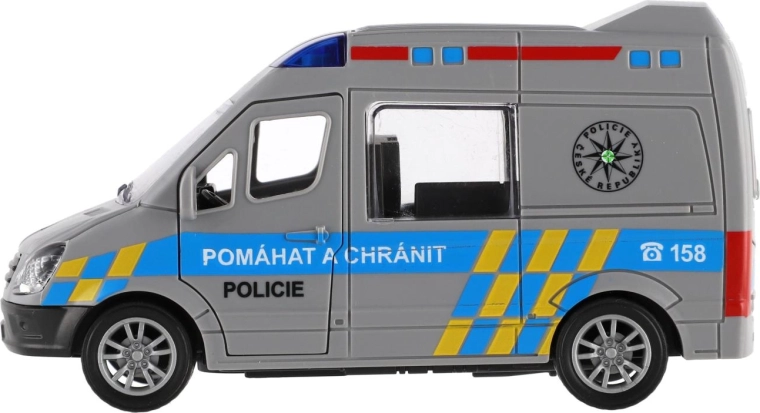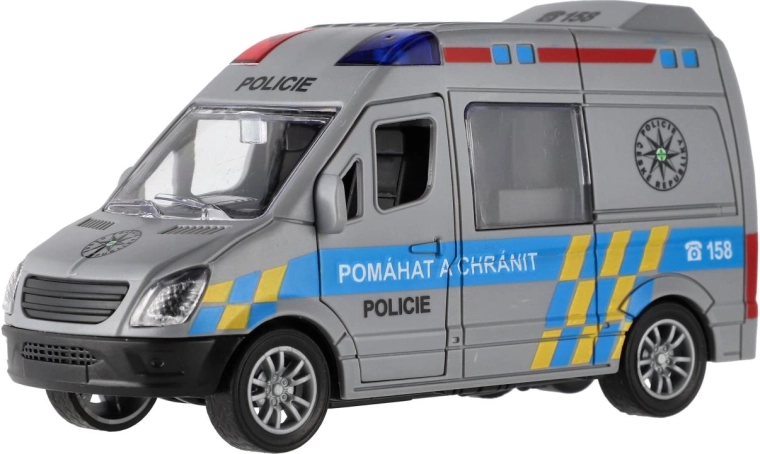 Akcja może się zacząć! Kompaktowy plastikowy policyjny samochód o długości 12 cm z napędem ciernym po naciągnięciu sam rusza do przodu. Dzięki realistycznemu policyjnemu wzornictwu i dokładnemu wykonaniu jest idealny do zabawy w ratowników i służby bezpieczeństwa. Świetnie uzupełnia się z innymi modelami, takimi jak straż pożarna czy karetka.