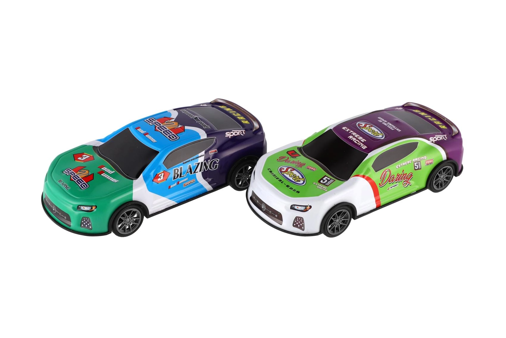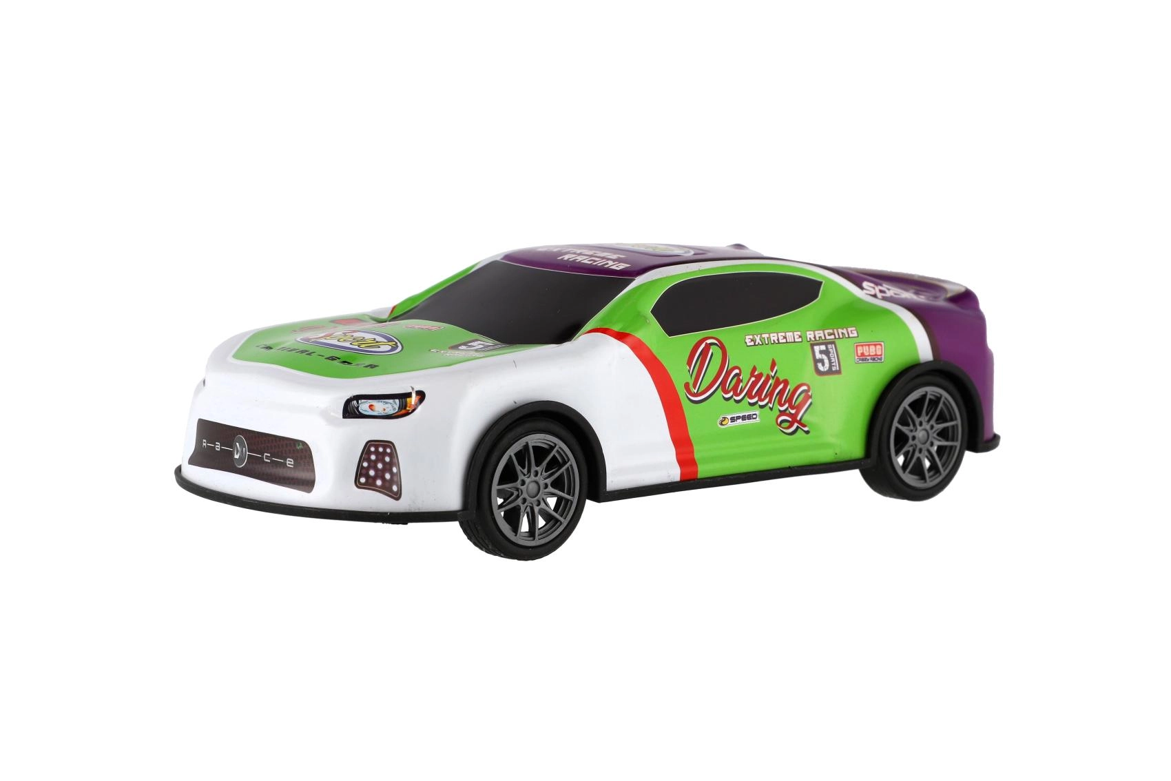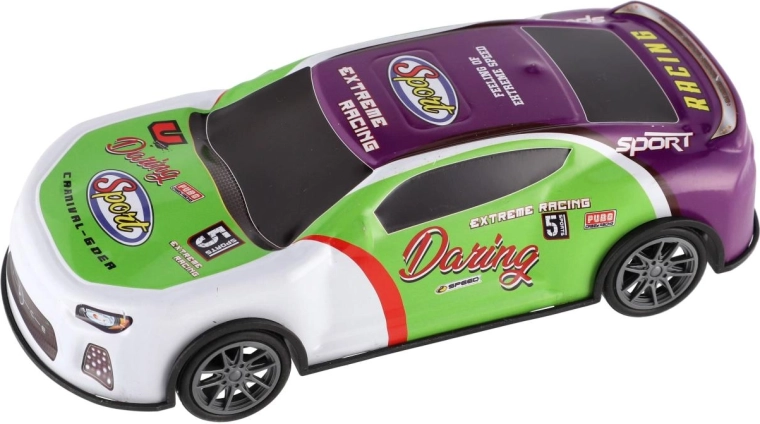 Szybki plastikowy samochodzik wyścigowy o długości 17 cm z napędem ciernym dla łatwej jazdy do przodu. Wystarczy naciągnąć, puścić i cieszyć się mnóstwem zabawy w domu i w podróży. Sportowy design, wyraziste kolory i płynna jazda po równej powierzchni czynią z niego świetny prezent dla małych rajdowców.