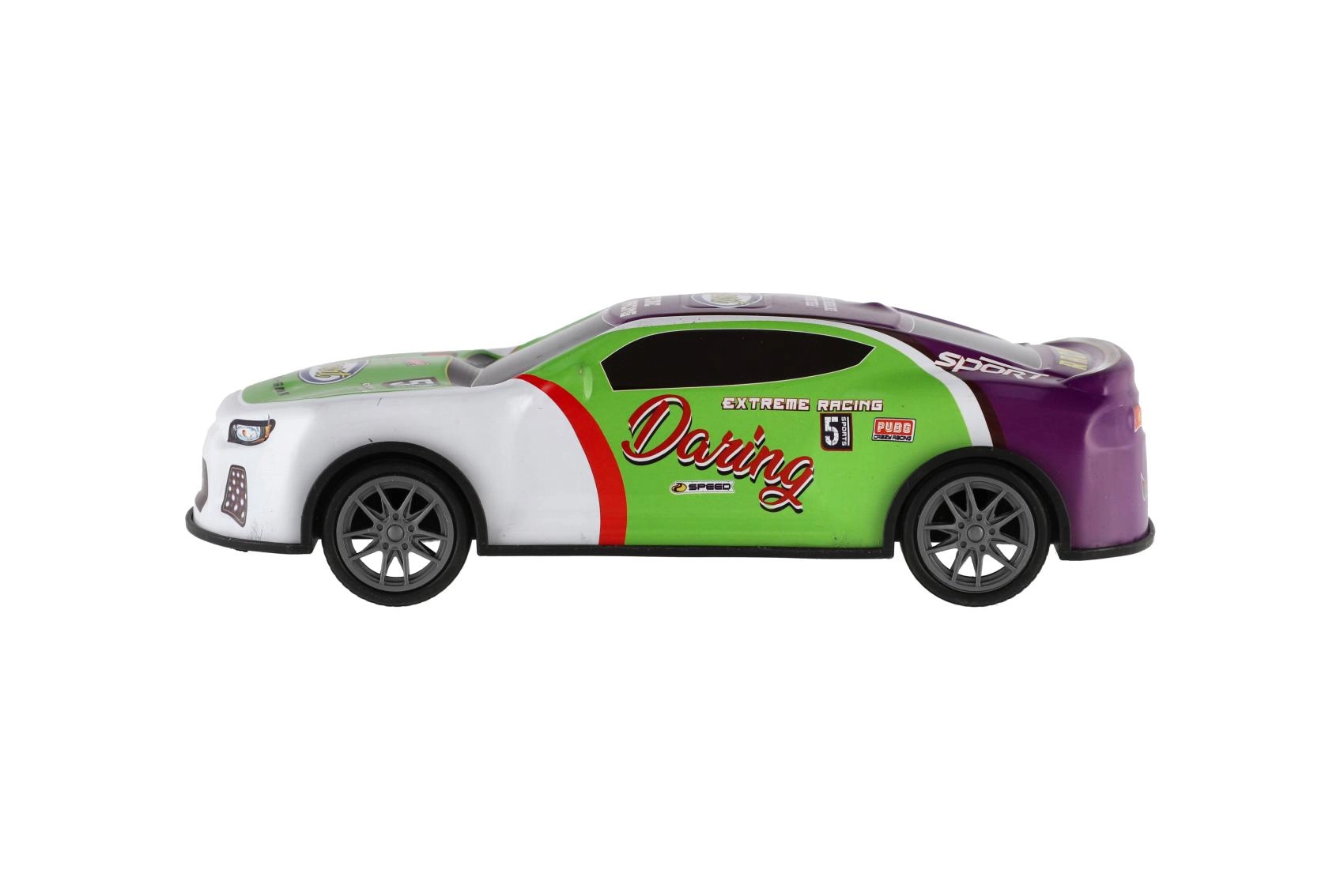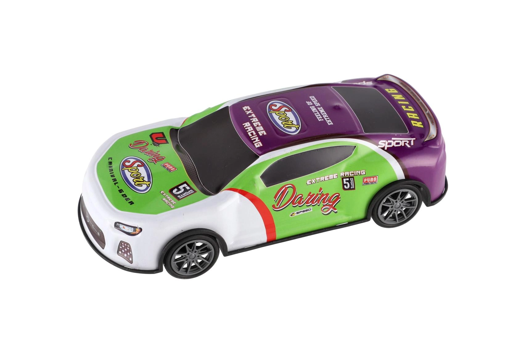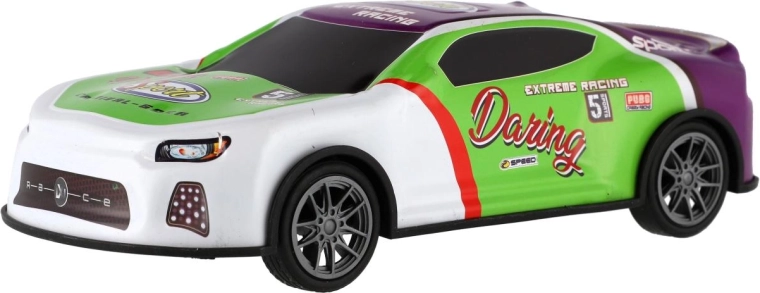 Autko wyróżnia się aerodynamicznym sportowym wyglądem, detalicznymi nadrukami oraz gładkimi kołami dla płynnej jazdy po równych nawierzchniach. Lekka plastikowa konstrukcja gwarantuje łatwą obsługę i wytrzymałość podczas codziennej zabawy.