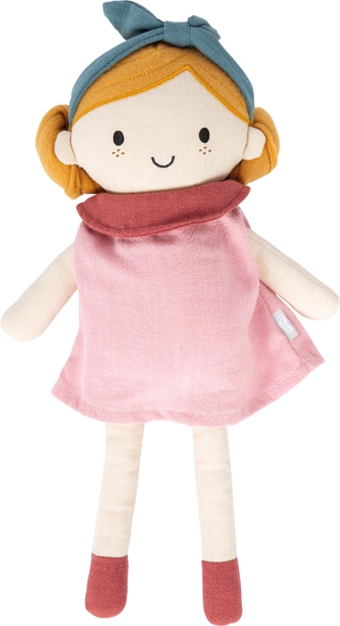 Lina łączy przytulność pluszowej zabawki z walorami klasycznej lalki. Wykonana jest z miękkiej tkaniny, ma urocą fryzurę z opaską i przyjemną różową sukienkę, którą można zdejmować. Dzieci mogą z nią odgrywać codzienne sytuacje, uczyć się wyrażać emocje oraz rozwijać empatię i umiejętności społeczne.